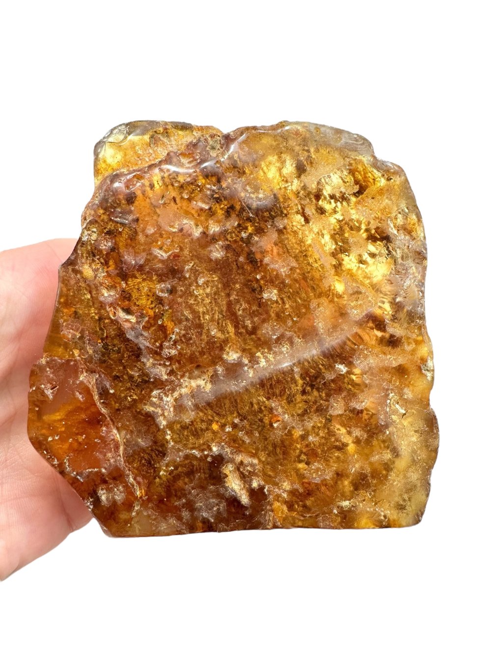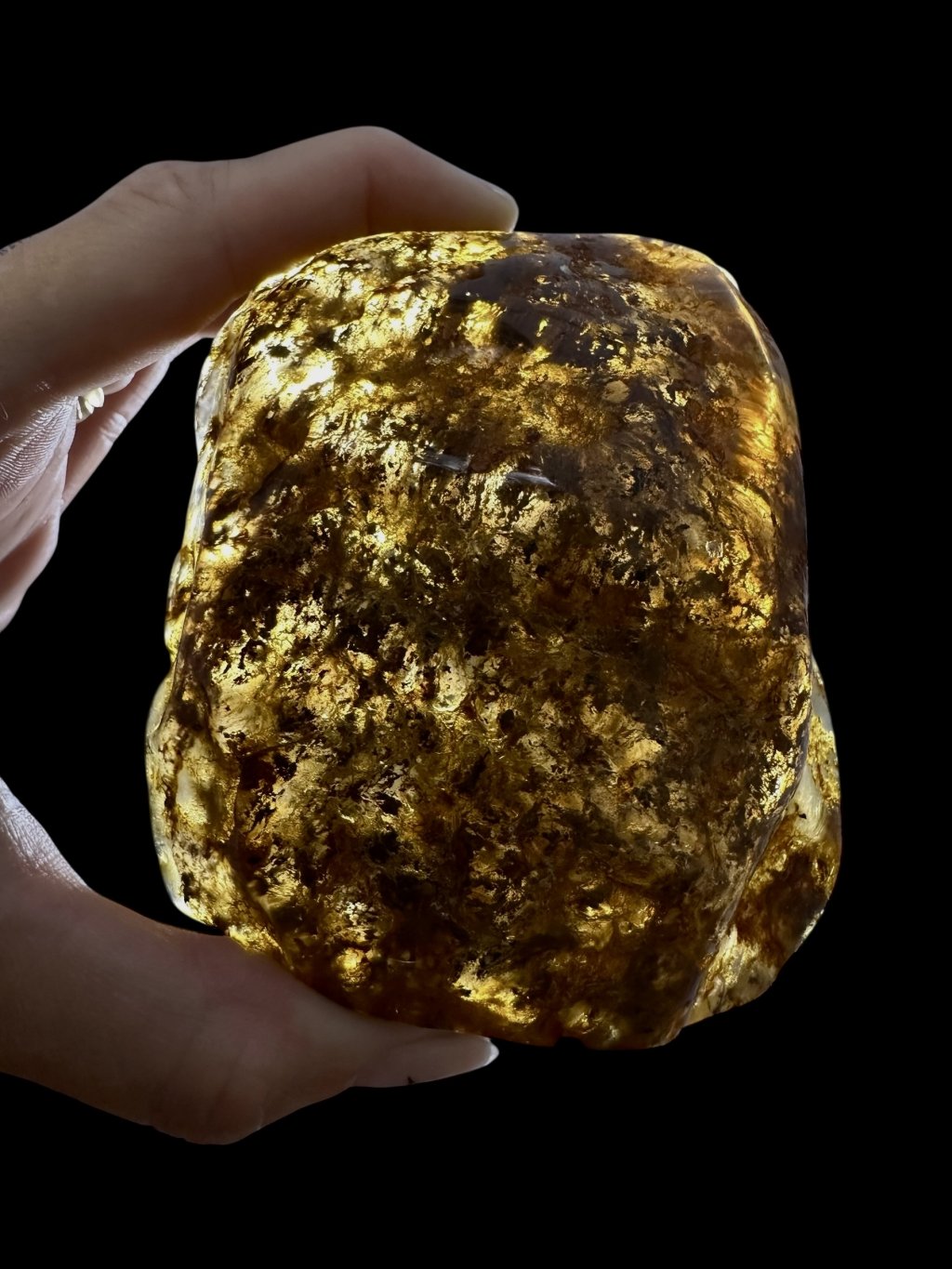 Copal may resemble amber at first glance—it is often clear, golden, and lightweight, and can sometimes contain insect or plant inclusions. However, the key difference lies in its physical and chemical properties: copal is softer, less stable, often slightly sticky, and dissolves in organic solvents (e.g. acetone), whereas true amber remains unaffected.