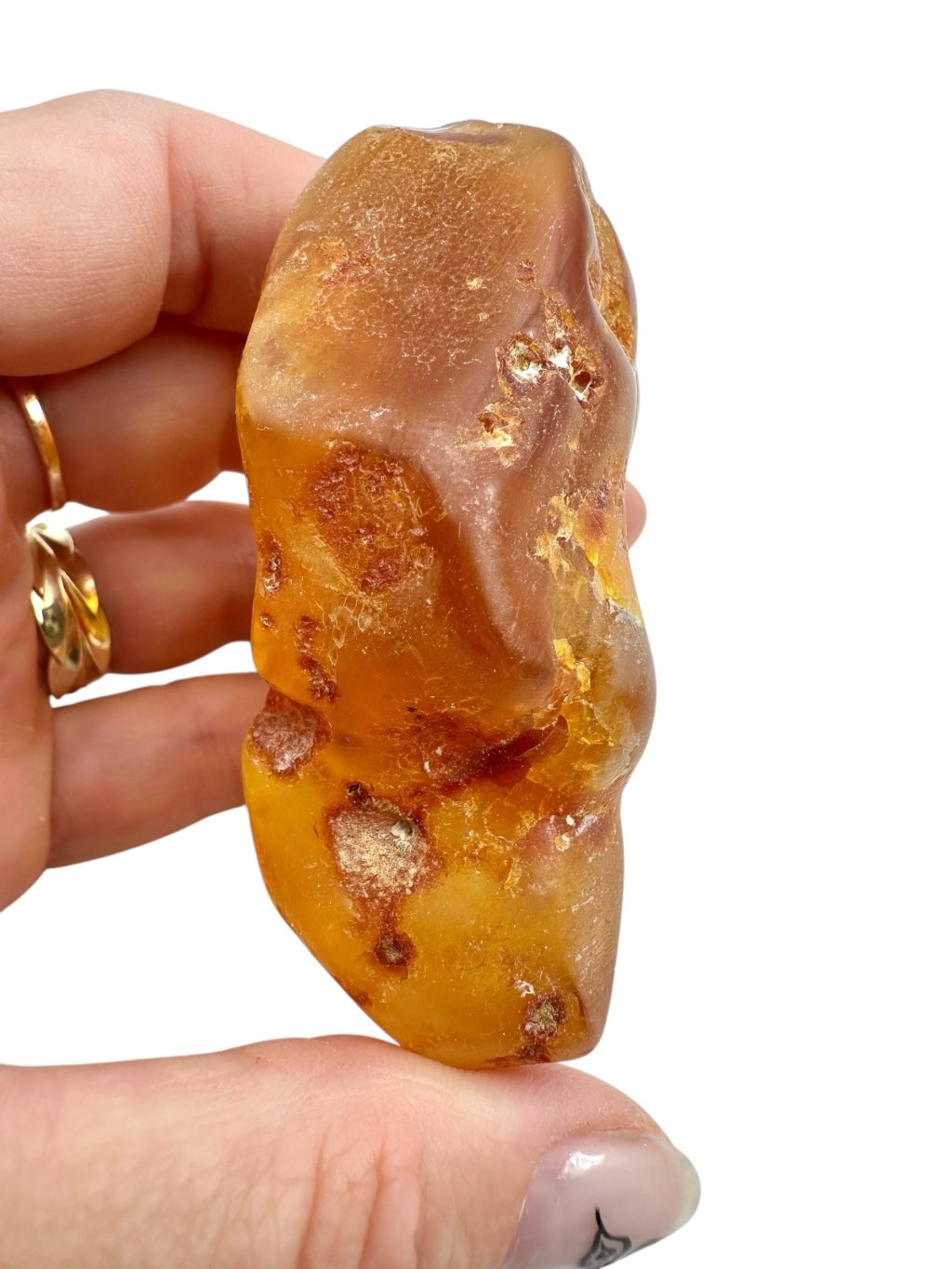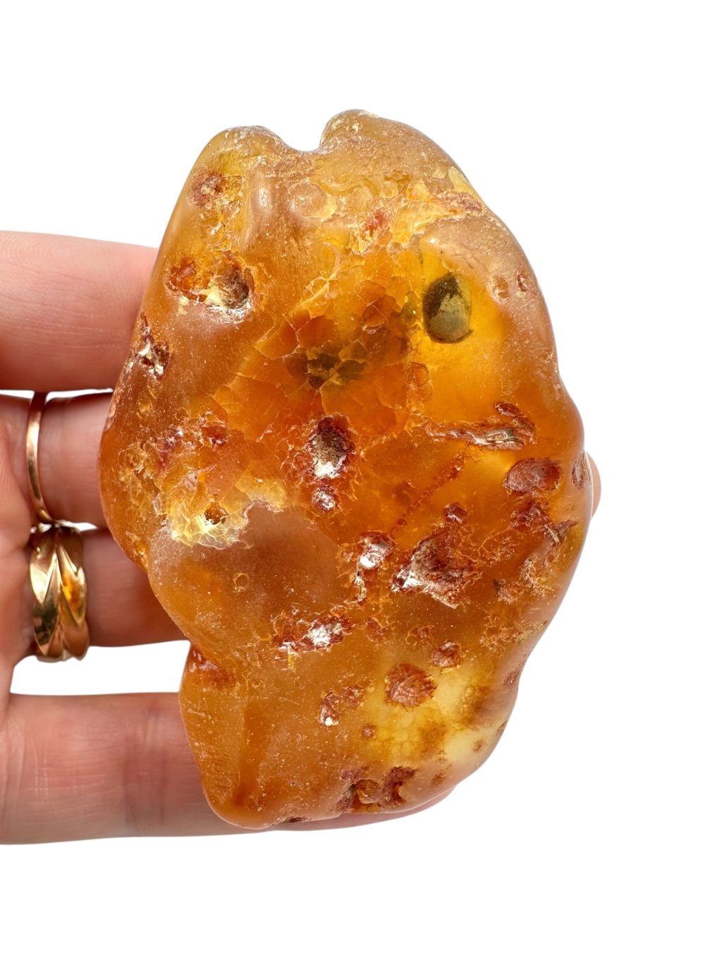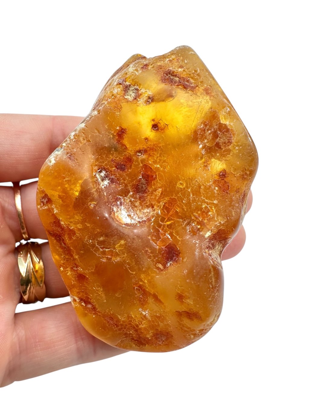 Colombian amber can vary in color from light yellow to dark brown, with honey and reddish tones also occurring. As with other amber types, it can be found in transparent forms, as well as in specimens with various degrees of cloudiness.