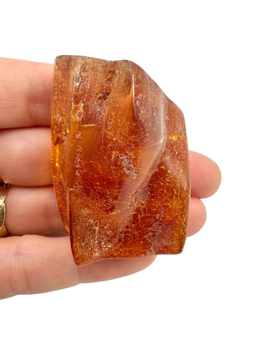 Colombian amber can vary in color from light yellow to dark brown, with honey and reddish tones also occurring. As with other amber types, it can be found in transparent forms, as well as in specimens with various degrees of cloudiness.