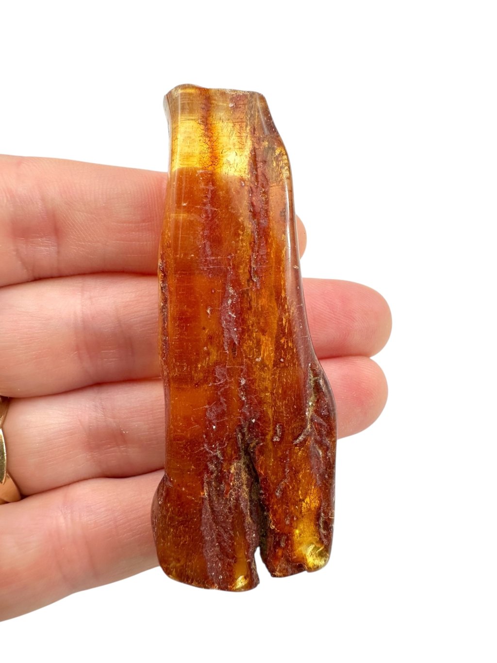 Colombian amber can vary in color from light yellow to dark brown, with honey and reddish tones also occurring. As with other amber types, it can be found in transparent forms, as well as in specimens with various degrees of cloudiness.