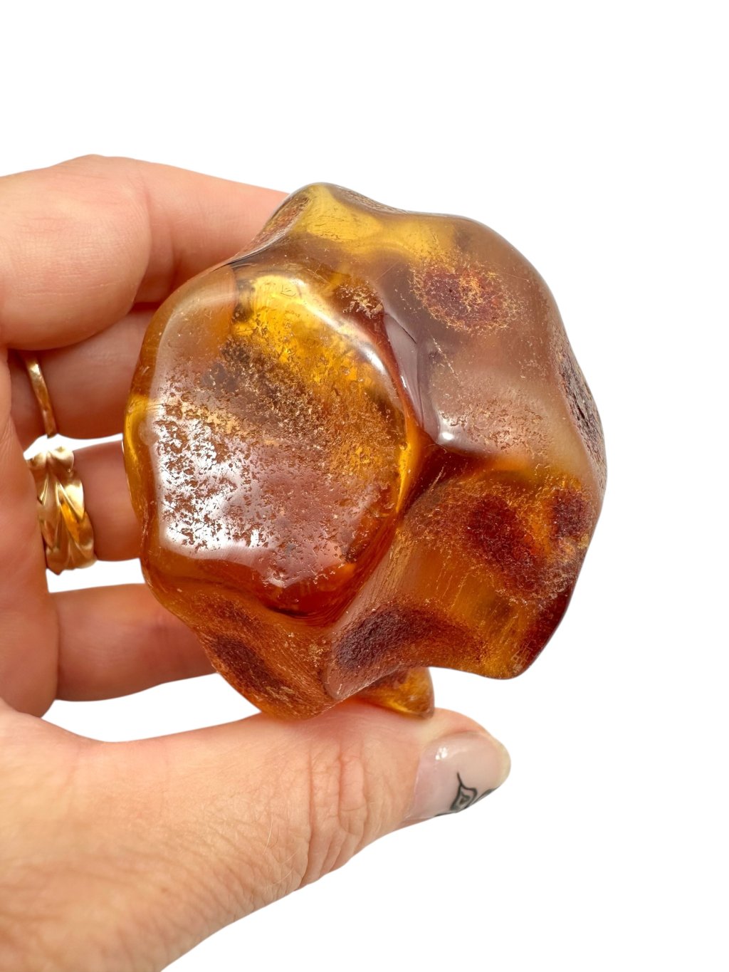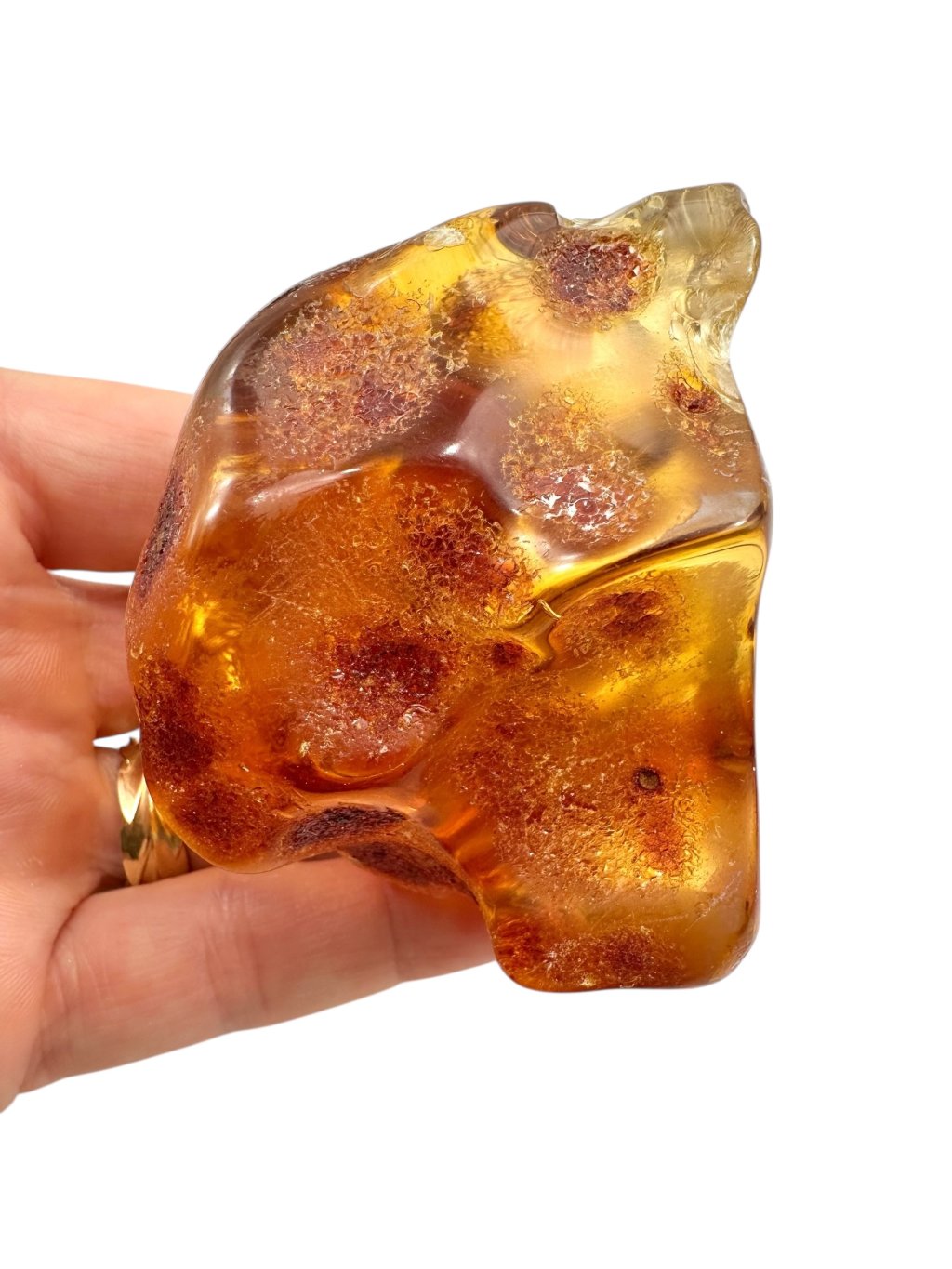 Colombian amber can vary in color from light yellow to dark brown, with honey and reddish tones also occurring. As with other amber types, it can be found in transparent forms, as well as in specimens with various degrees of cloudiness.