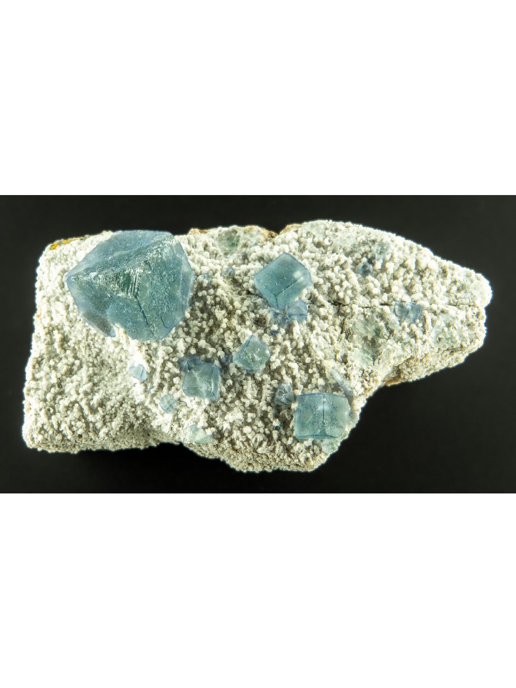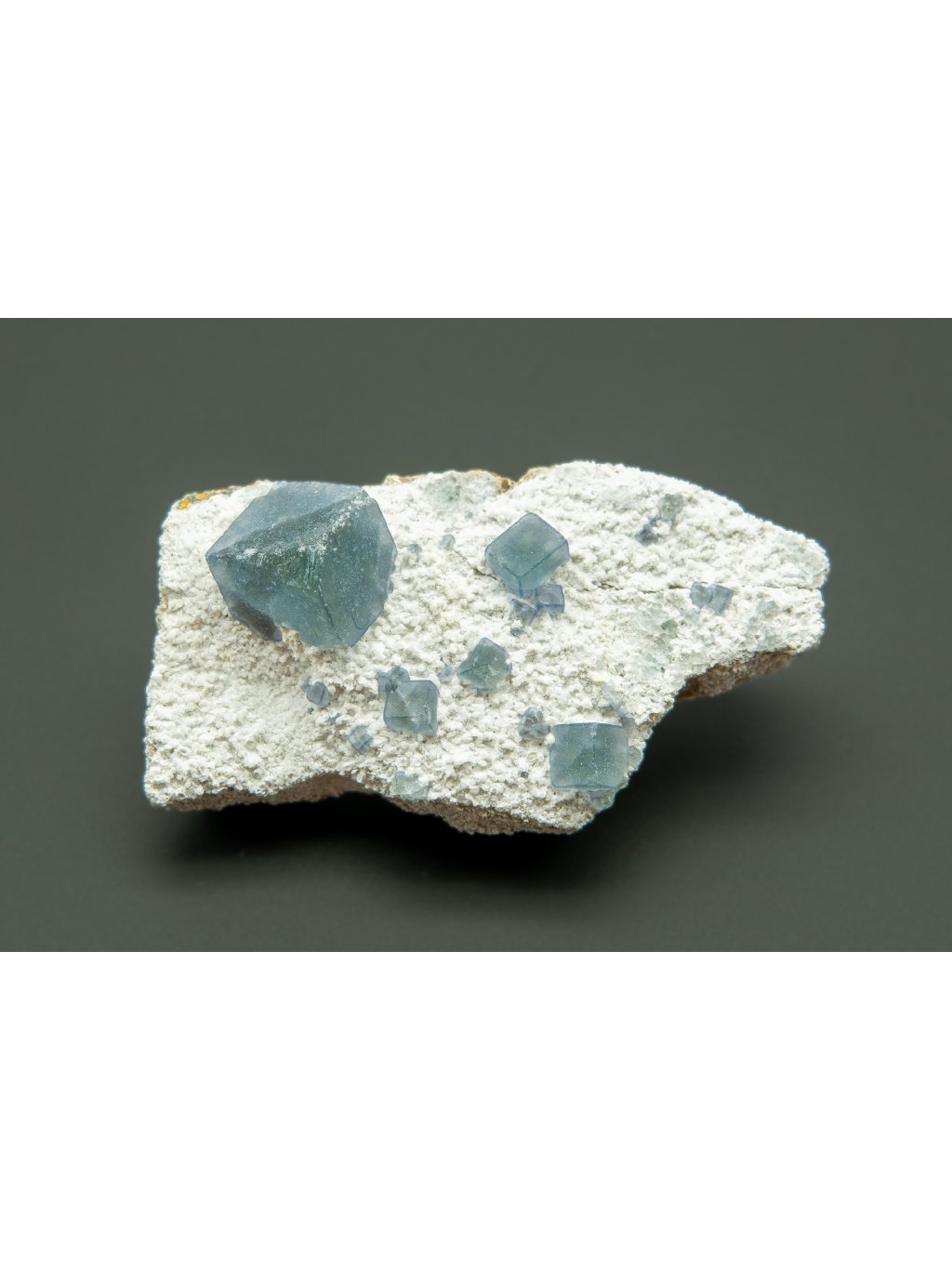 Fluorit: Nedávno objevené vzorky fluoritu z Huanggang Mine často vykazují výjimečné barvy a krystalové formy. Tyto vzorky mohou být různých barev, včetně zelené, fialové, modré a někdy i vícebarevné kombinace. Fluorit z této lokality je známý svou vynikající průhledností a leskem, často tvořícím kubické a osmistěnné krystaly. Fluorit se často nachází na kusu horniny, který je obvykle tvořen bílým substrátem, jako je kalcit nebo křemen. Tento bílý substrát poskytuje kontrastní pozadí pro krystaly fluoritu, které mohou být různě zbarvené. Tento kontrastní efekt zvyšuje vizuální atraktivitu a estetickou hodnotu těchto vzorků fluoritu.