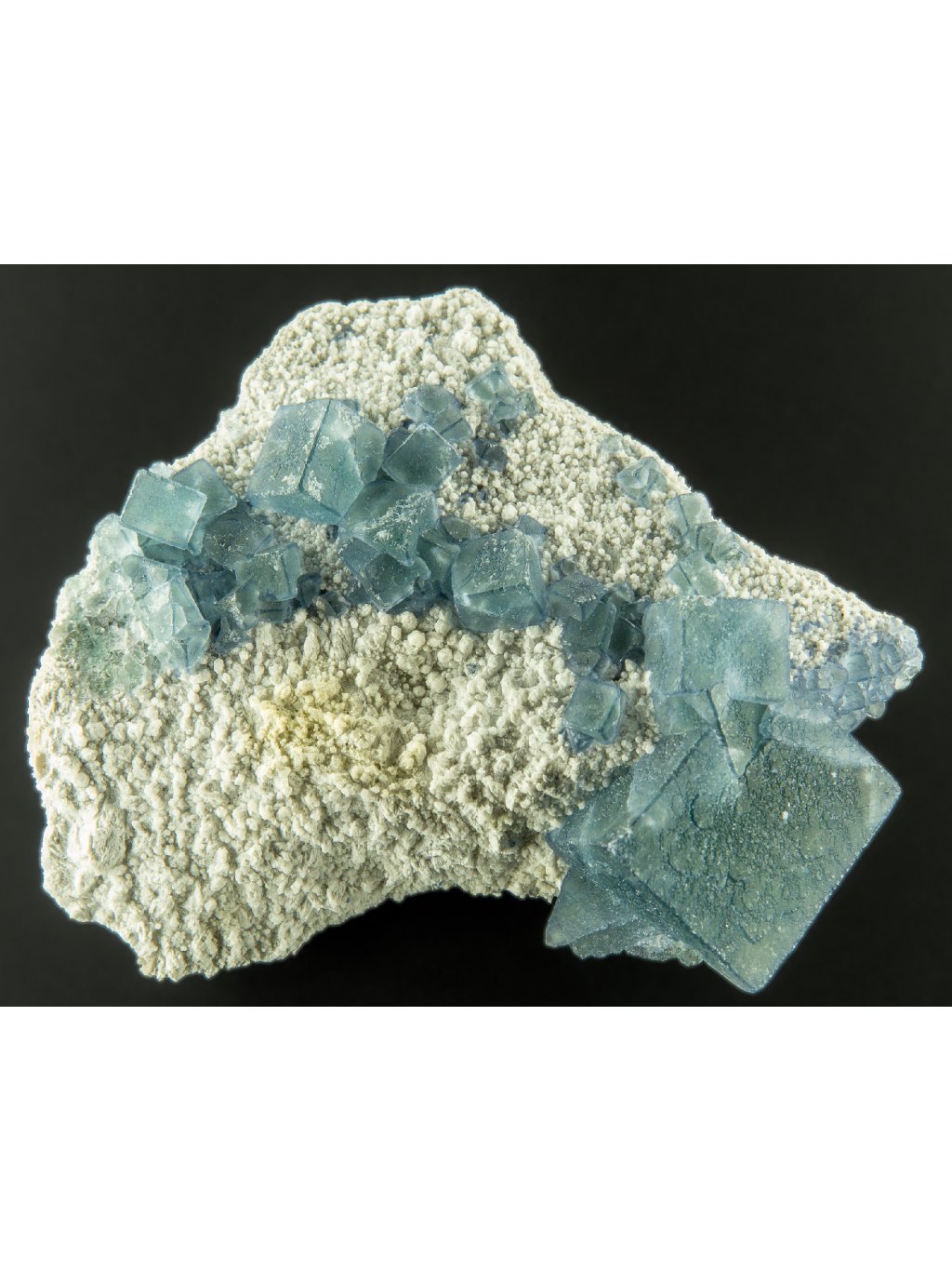 Fluorit: Nedávno objevené vzorky fluoritu z Huanggang Mine často vykazují výjimečné barvy a krystalové formy. Tyto vzorky mohou být různých barev, včetně zelené, fialové, modré a někdy i vícebarevné kombinace. Fluorit z této lokality je známý svou vynikající průhledností a leskem, často tvořícím kubické a osmistěnné krystaly. Fluorit se často nachází na kusu horniny, který je obvykle tvořen bílým substrátem, jako je kalcit nebo křemen. Tento bílý substrát poskytuje kontrastní pozadí pro krystaly fluoritu, které mohou být různě zbarvené. Tento kontrastní efekt zvyšuje vizuální atraktivitu a estetickou hodnotu těchto vzorků fluoritu.