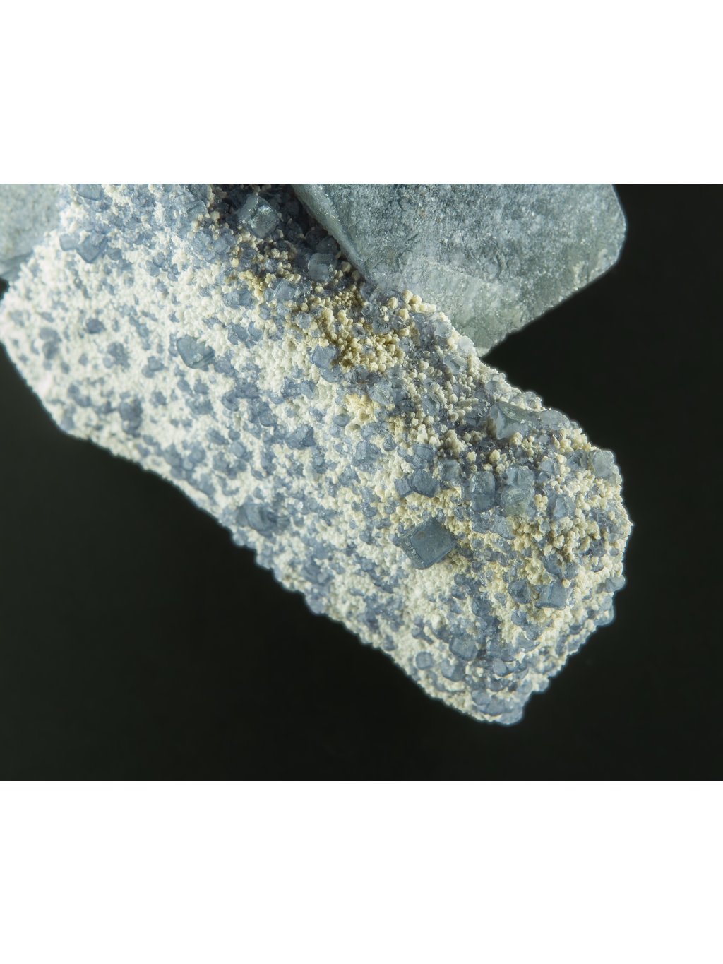 Fluorit: Nedávno objevené vzorky fluoritu z Huanggang Mine často vykazují výjimečné barvy a krystalové formy. Tyto vzorky mohou být různých barev, včetně zelené, fialové, modré a někdy i vícebarevné kombinace. Fluorit z této lokality je známý svou vynikající průhledností a leskem, často tvořícím kubické a osmistěnné krystaly. Fluorit se často nachází na kusu horniny, který je obvykle tvořen bílým substrátem, jako je kalcit nebo křemen. Tento bílý substrát poskytuje kontrastní pozadí pro krystaly fluoritu, které mohou být různě zbarvené. Tento kontrastní efekt zvyšuje vizuální atraktivitu a estetickou hodnotu těchto vzorků fluoritu.