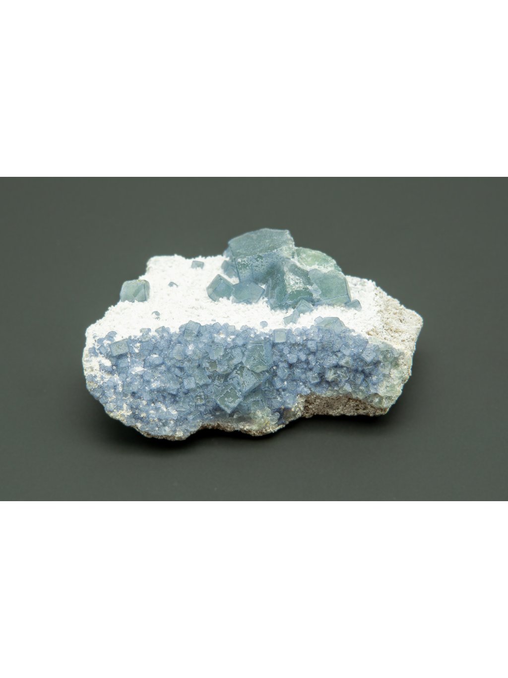 Fluorit: Nedávno objevené vzorky fluoritu z Huanggang Mine často vykazují výjimečné barvy a krystalové formy. Tyto vzorky mohou být různých barev, včetně zelené, fialové, modré a někdy i vícebarevné kombinace. Fluorit z této lokality je známý svou vynikající průhledností a leskem, často tvořícím kubické a osmistěnné krystaly. Fluorit se často nachází na kusu horniny, který je obvykle tvořen bílým substrátem, jako je kalcit nebo křemen. Tento bílý substrát poskytuje kontrastní pozadí pro krystaly fluoritu, které mohou být různě zbarvené. Tento kontrastní efekt zvyšuje vizuální atraktivitu a estetickou hodnotu těchto vzorků fluoritu.