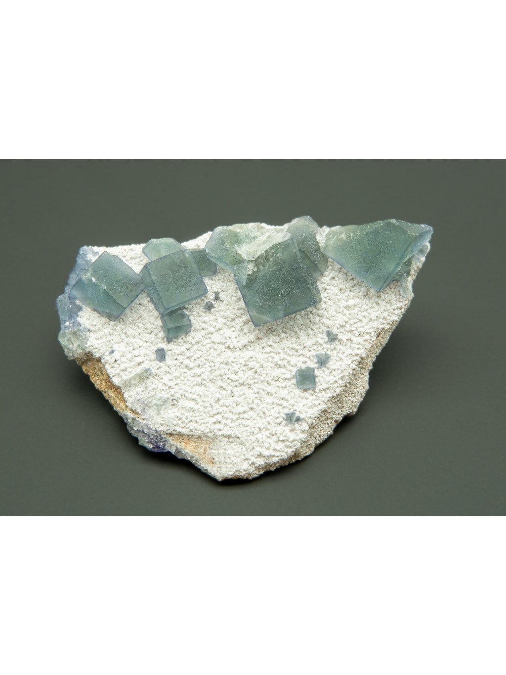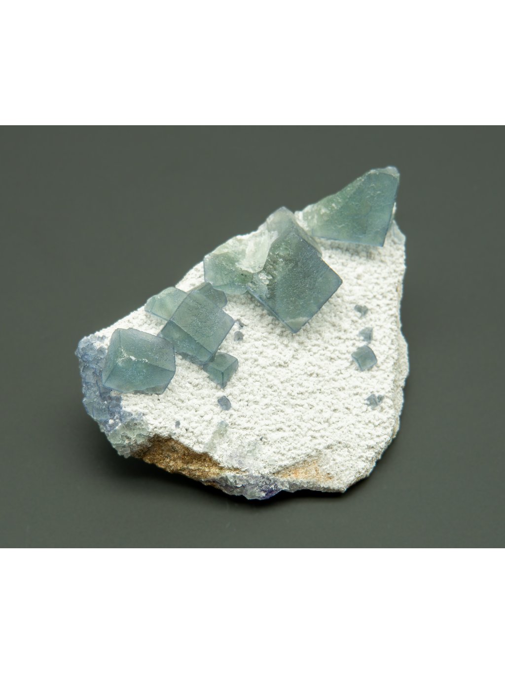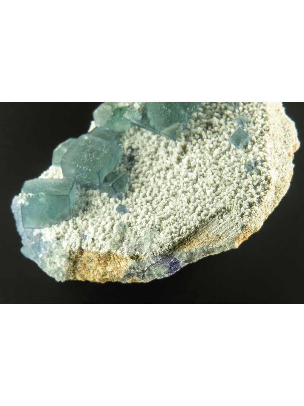 Fluorit: Nedávno objevené vzorky fluoritu z Huanggang Mine často vykazují výjimečné barvy a krystalové formy. Tyto vzorky mohou být různých barev, včetně zelené, fialové, modré a někdy i vícebarevné kombinace. Fluorit z této lokality je známý svou vynikající průhledností a leskem, často tvořícím kubické a osmistěnné krystaly. Fluorit se často nachází na kusu horniny, který je obvykle tvořen bílým substrátem, jako je kalcit nebo křemen. Tento bílý substrát poskytuje kontrastní pozadí pro krystaly fluoritu, které mohou být různě zbarvené. Tento kontrastní efekt zvyšuje vizuální atraktivitu a estetickou hodnotu těchto vzorků fluoritu.