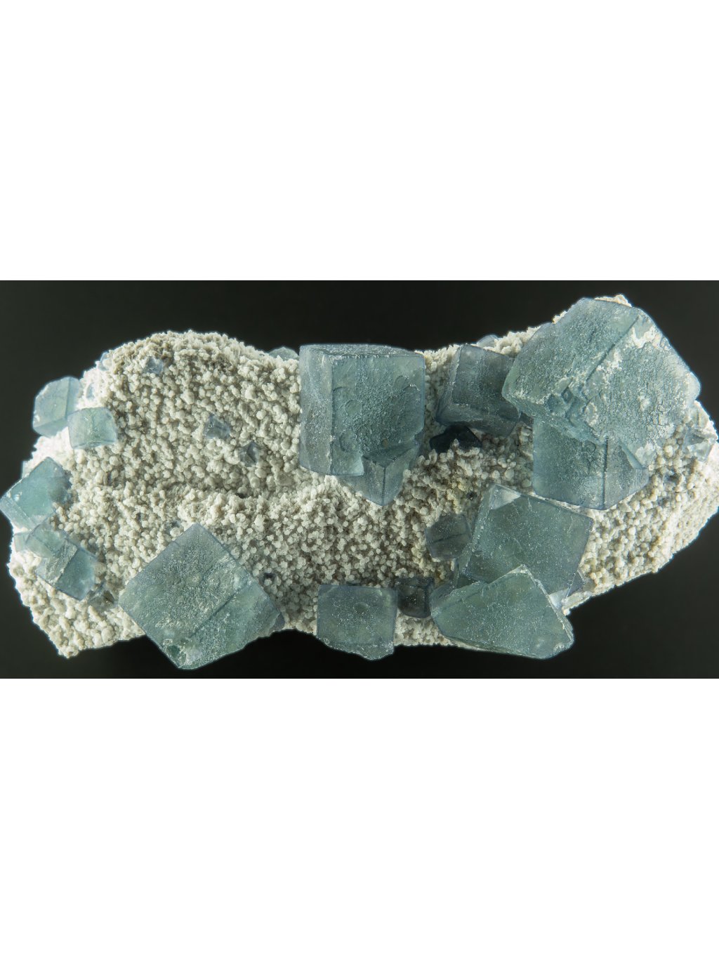Fluorit: Nedávno objevené vzorky fluoritu z Huanggang Mine často vykazují výjimečné barvy a krystalové formy. Tyto vzorky mohou být různých barev, včetně zelené, fialové, modré a někdy i vícebarevné kombinace. Fluorit z této lokality je známý svou vynikající průhledností a leskem, často tvořícím kubické a osmistěnné krystaly. Fluorit se často nachází na kusu horniny, který je obvykle tvořen bílým substrátem, jako je kalcit nebo křemen. Tento bílý substrát poskytuje kontrastní pozadí pro krystaly fluoritu, které mohou být různě zbarvené. Tento kontrastní efekt zvyšuje vizuální atraktivitu a estetickou hodnotu těchto vzorků fluoritu.