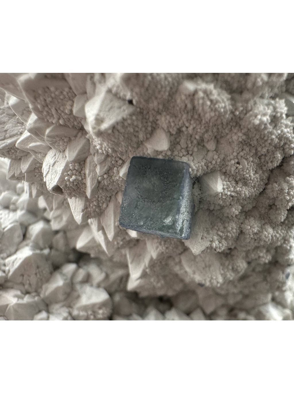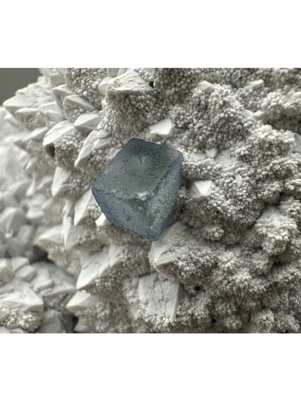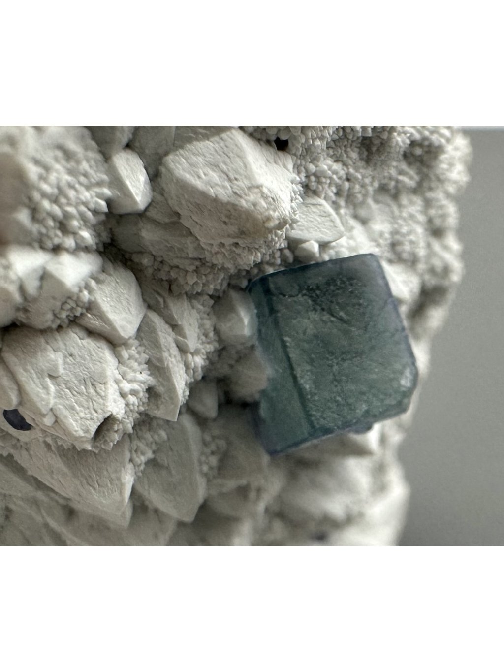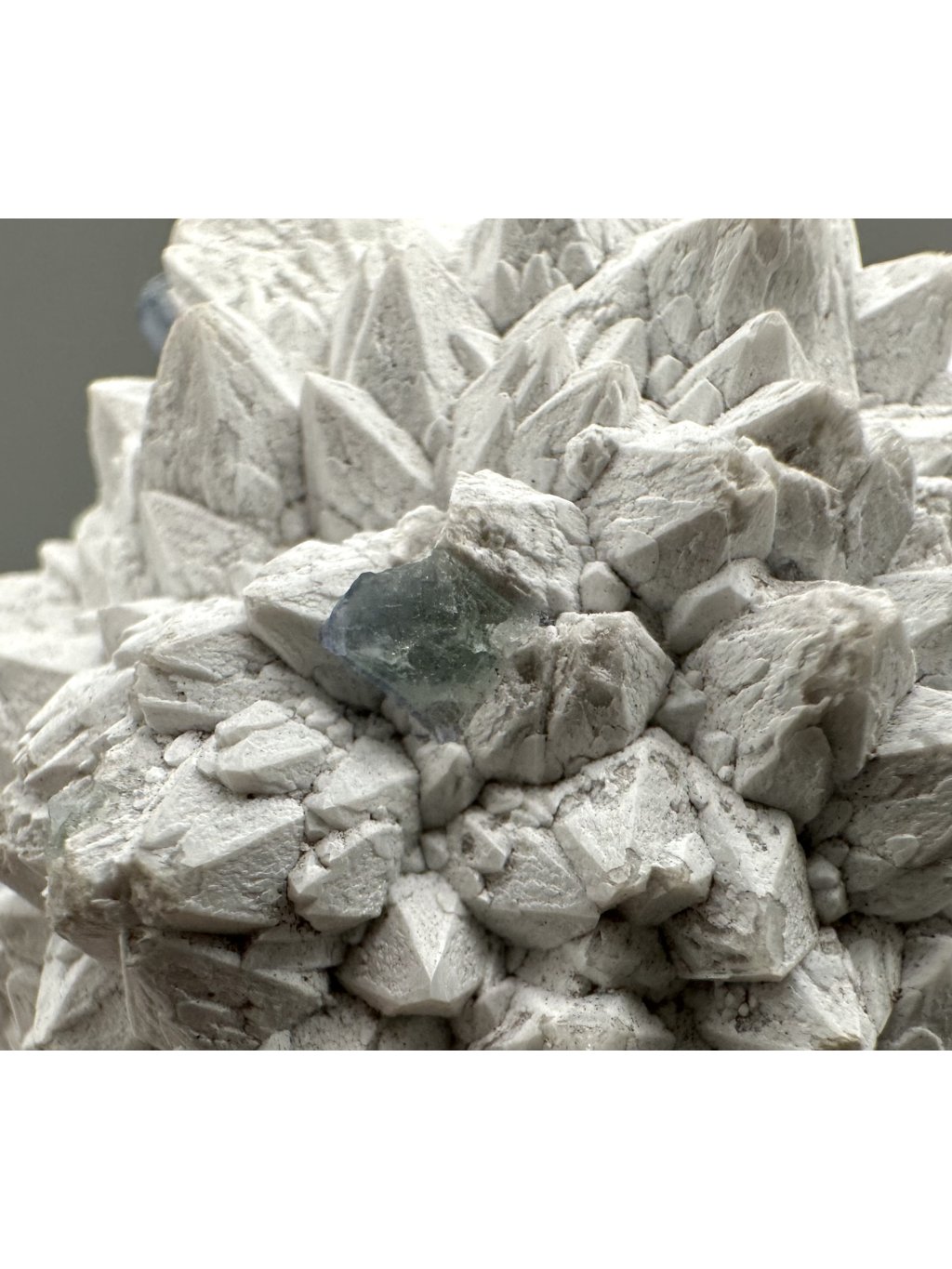 Fluorit: Nedávno objevené vzorky fluoritu z Huanggang Mine často vykazují výjimečné barvy a krystalové formy. Tyto vzorky mohou být různých barev, včetně zelené, fialové, modré a někdy i vícebarevné kombinace. Fluorit z této lokality je známý svou vynikající průhledností a leskem, často tvořícím kubické a osmistěnné krystaly. Fluorit se často nachází na kusu horniny, který je obvykle tvořen bílým substrátem, jako je kalcit nebo křemen. Tento bílý substrát poskytuje kontrastní pozadí pro krystaly fluoritu, které mohou být různě zbarvené. Tento kontrastní efekt zvyšuje vizuální atraktivitu a estetickou hodnotu těchto vzorků fluoritu.