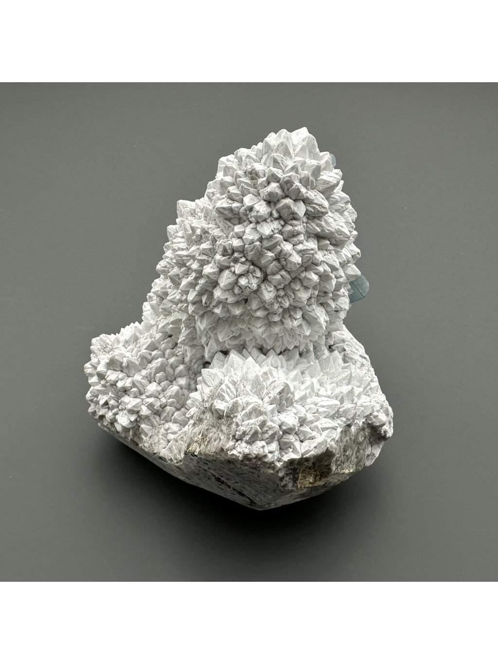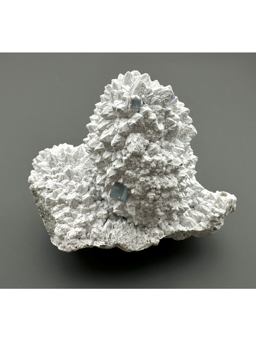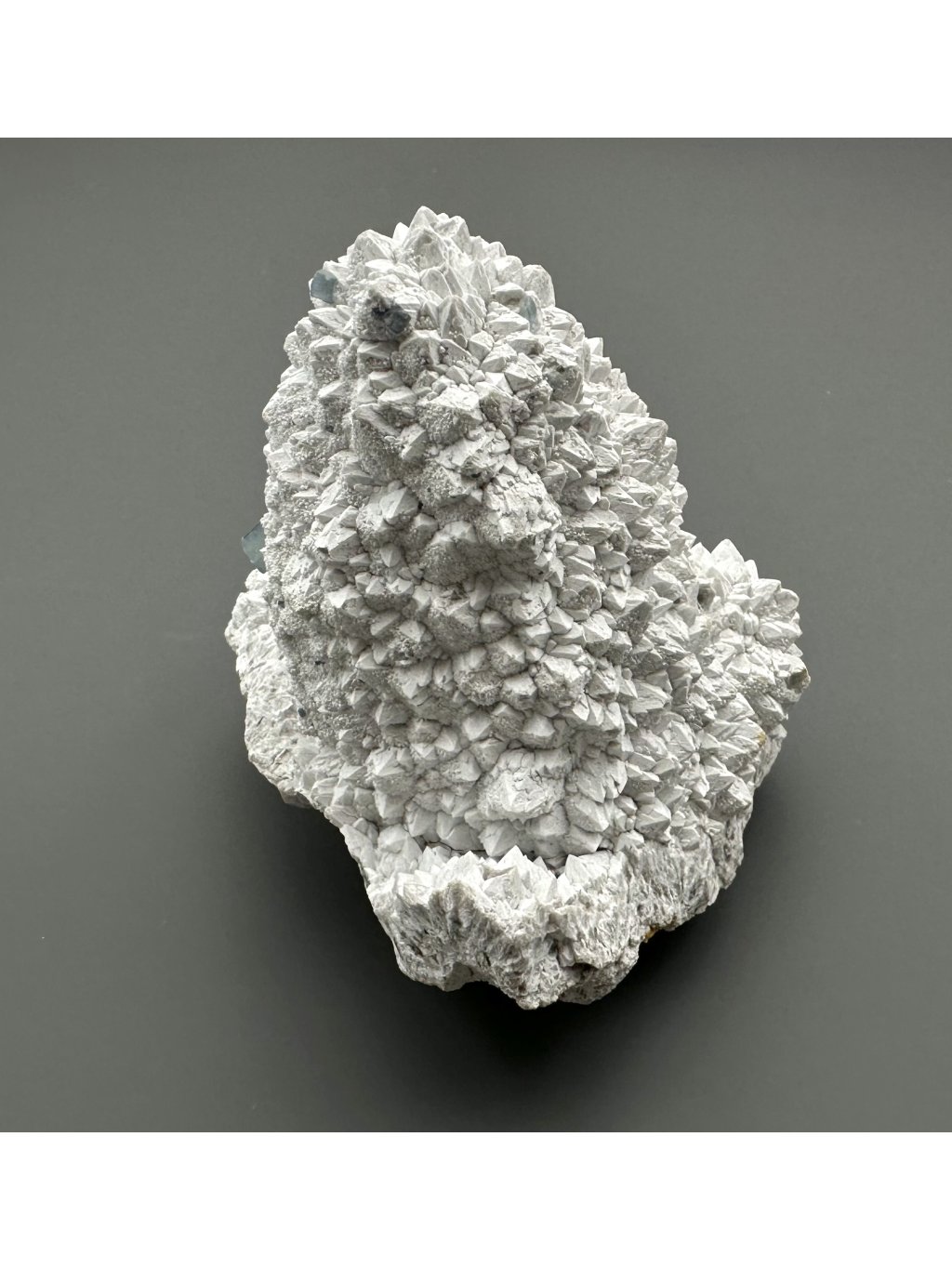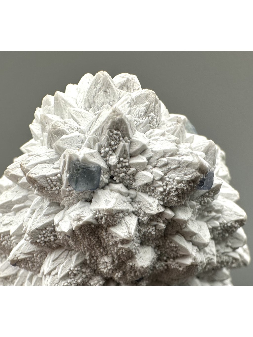 Fluorit: Nedávno objevené vzorky fluoritu z Huanggang Mine často vykazují výjimečné barvy a krystalové formy. Tyto vzorky mohou být různých barev, včetně zelené, fialové, modré a někdy i vícebarevné kombinace. Fluorit z této lokality je známý svou vynikající průhledností a leskem, často tvořícím kubické a osmistěnné krystaly. Fluorit se často nachází na kusu horniny, který je obvykle tvořen bílým substrátem, jako je kalcit nebo křemen. Tento bílý substrát poskytuje kontrastní pozadí pro krystaly fluoritu, které mohou být různě zbarvené. Tento kontrastní efekt zvyšuje vizuální atraktivitu a estetickou hodnotu těchto vzorků fluoritu.