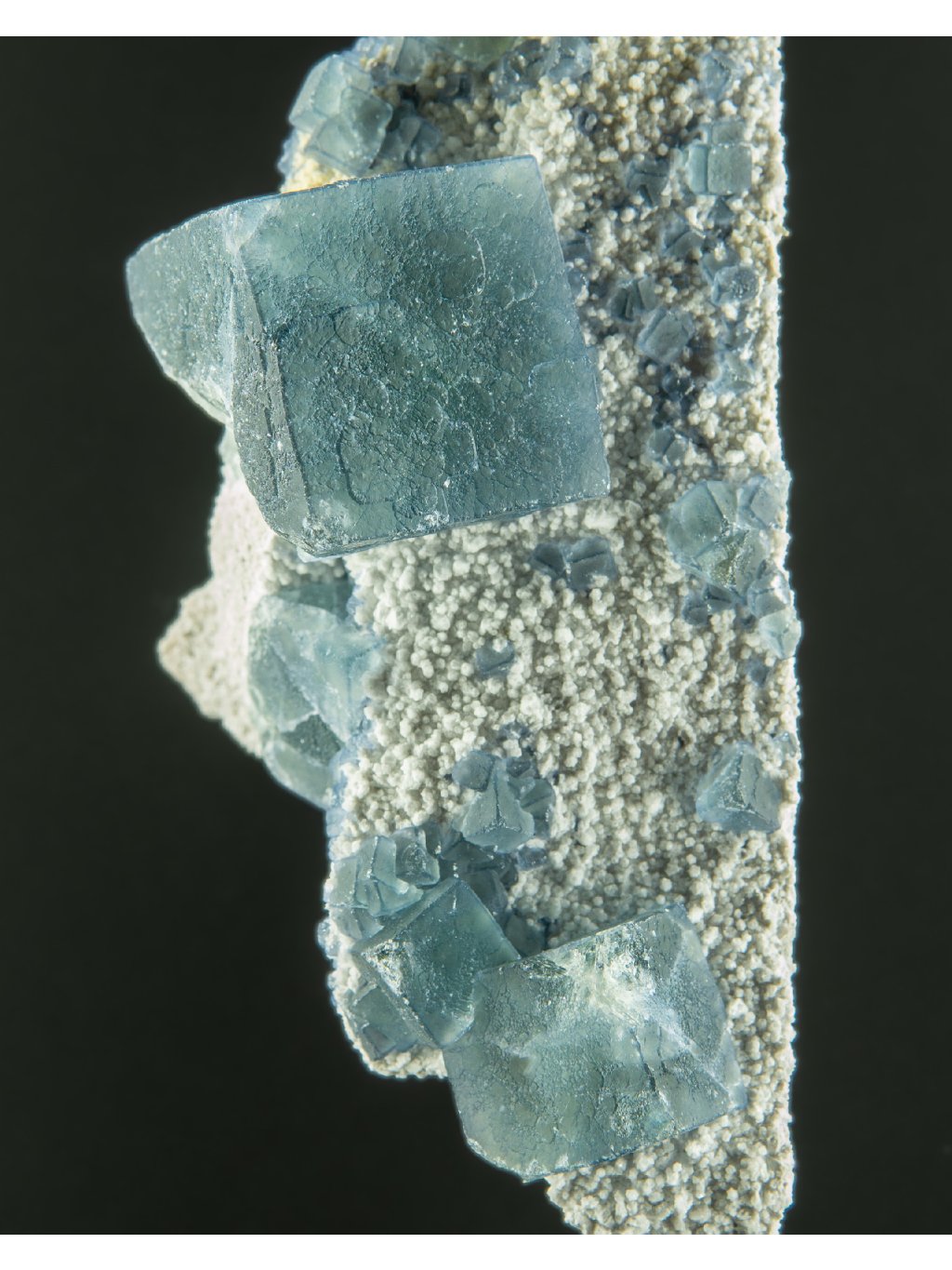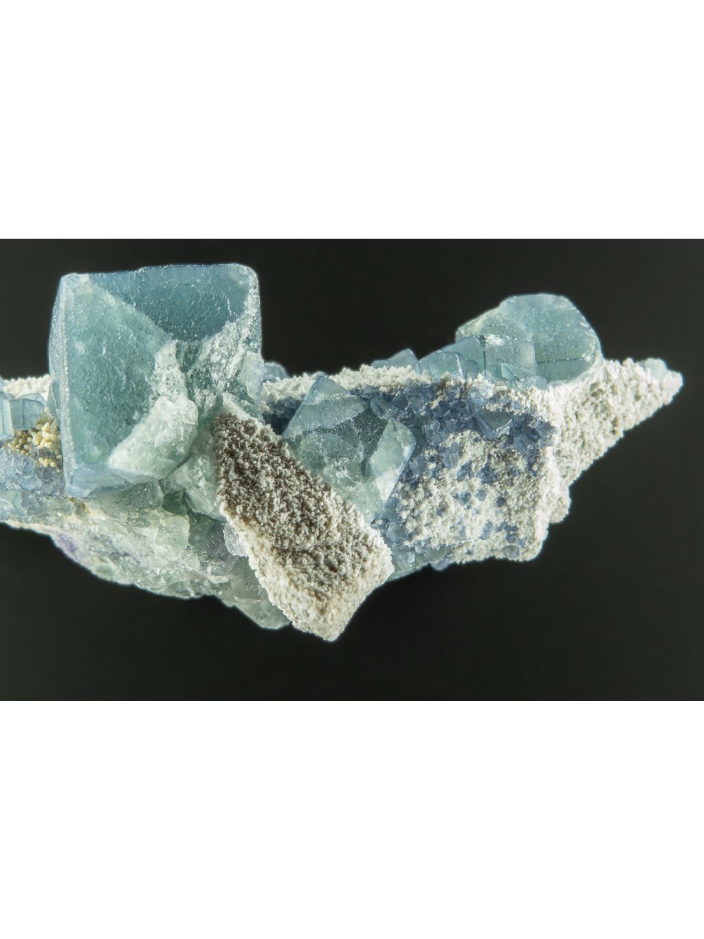 Fluorit: Nedávno objevené vzorky fluoritu z Huanggang Mine často vykazují výjimečné barvy a krystalové formy. Tyto vzorky mohou být různých barev, včetně zelené, fialové, modré a někdy i vícebarevné kombinace. Fluorit z této lokality je známý svou vynikající průhledností a leskem, často tvořícím kubické a osmistěnné krystaly. Fluorit se často nachází na kusu horniny, který je obvykle tvořen bílým substrátem, jako je kalcit nebo křemen. Tento bílý substrát poskytuje kontrastní pozadí pro krystaly fluoritu, které mohou být různě zbarvené. Tento kontrastní efekt zvyšuje vizuální atraktivitu a estetickou hodnotu těchto vzorků fluoritu.