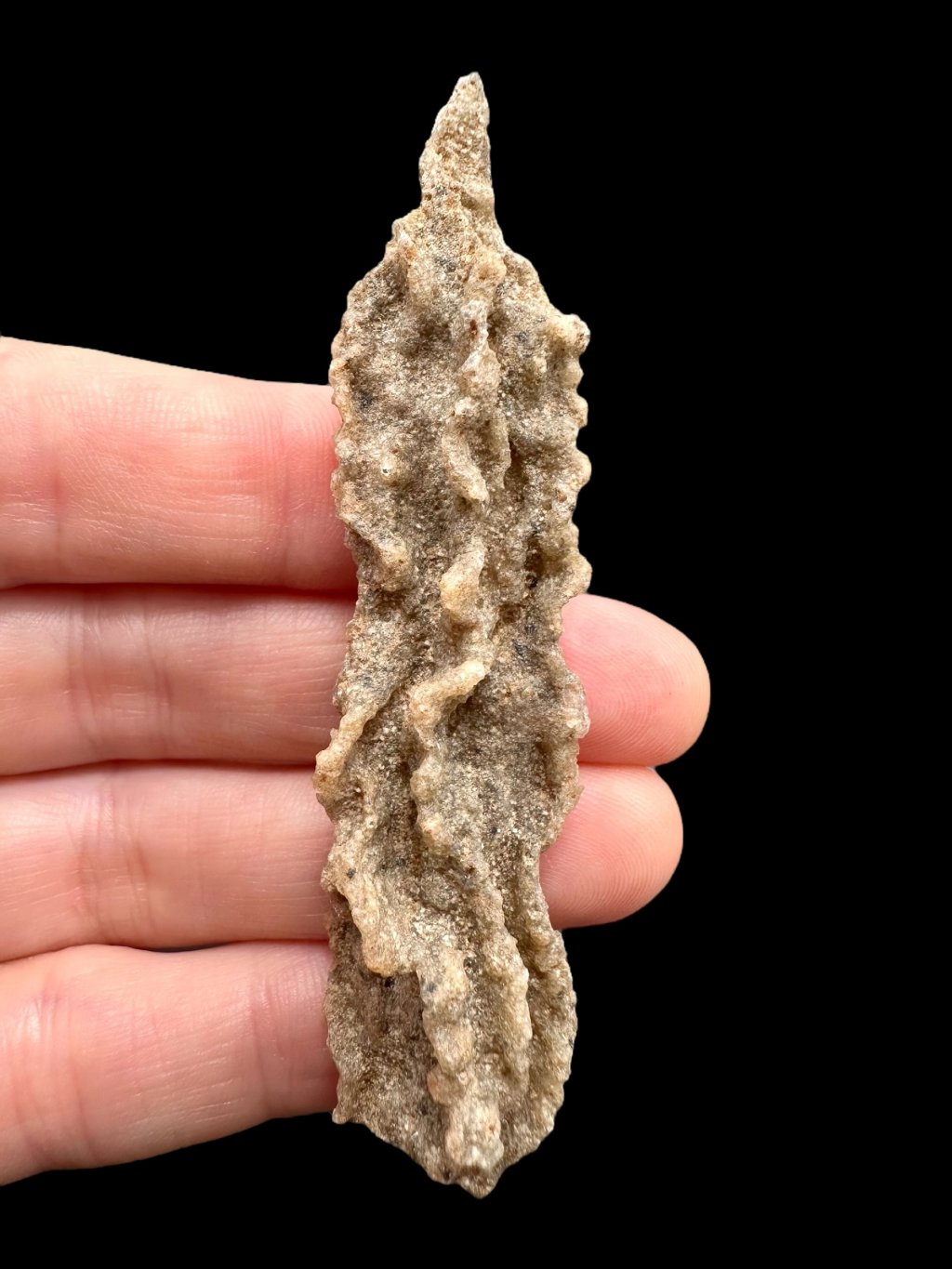 Fulgurit, přezdívaný také zkamenělý blesk či bleskovec, je sklovitý útvar vytvořený bleskem, který udeří do písku nebo jiného materiálu obsahující křemen. Při úderu blesku dosahuje teplota až k 30 tisícům °C a dochází k roztavení křemičitých částic. Blesk zahřeje písek natolik rychle, že se písek roztaví a následně rychle ochladí, čímž vytvoří trubičky, dutinky nebo jiné skelné struktury nazývané fulgurity. Systematicky je řadíme mezi tzv. šokově metamorfované horniny. Fulgurity mohou být různě dlouhé a tlusté v závislosti na intenzitě a délce blesku. Barva se obvykle pohybuje od čiré po růžovou nebo hnědou až černou, v závislosti na obsahu příměsí v písku. Vnitřní stěny fulguritů jsou pokryté sklovitou vrstvou, která vznikla roztavením písku. Na vnějším povrchu jsou viditelné stopy částečně roztavených písečných zrn. Fulgurity jsou poměrně křehké a snadno se lámou, což ztěžuje sběr větších kusů a zvyšuje jejich cenu. |