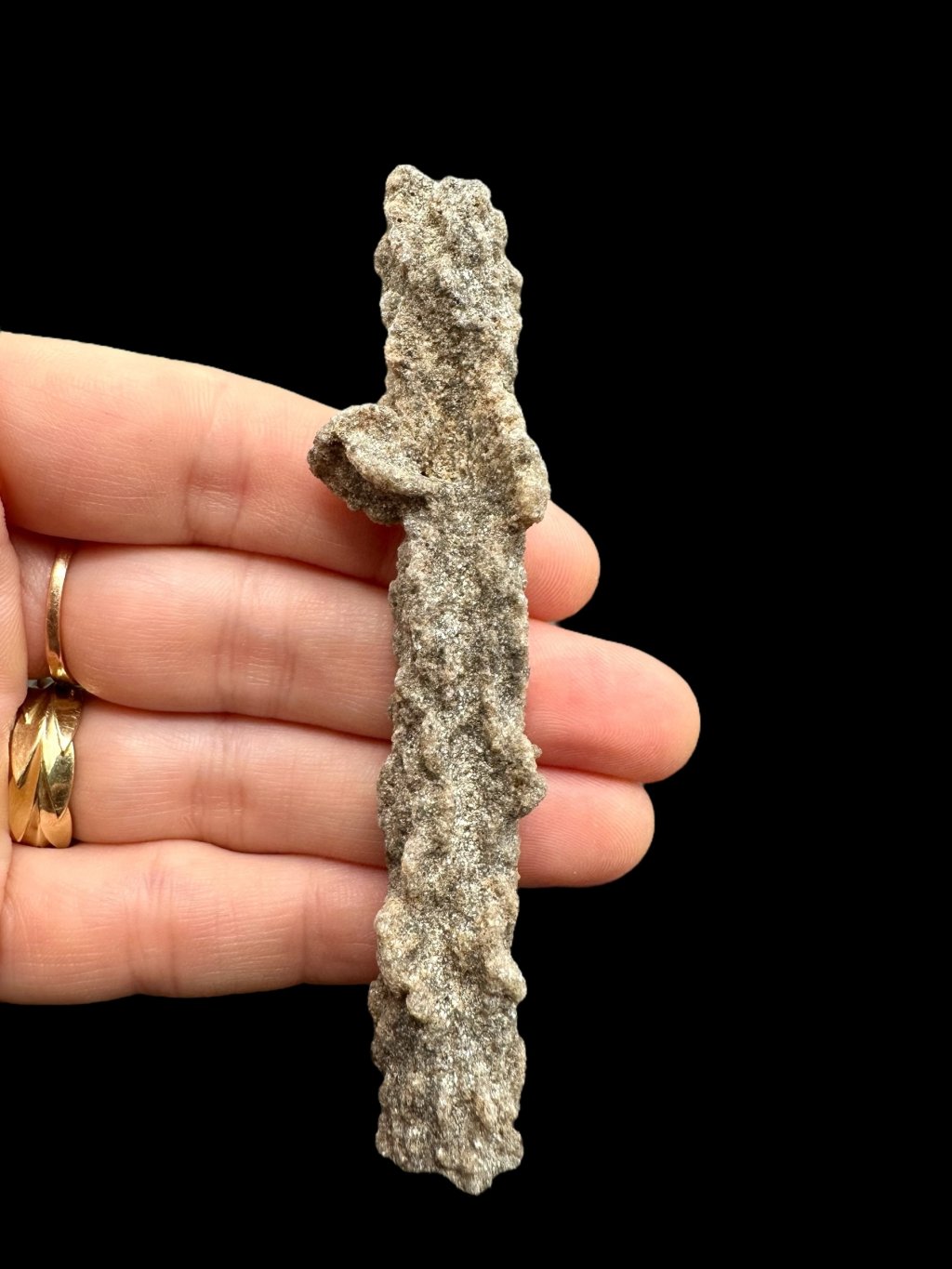 Fulgurit, přezdívaný také zkamenělý blesk či bleskovec, je sklovitý útvar vytvořený bleskem, který udeří do písku nebo jiného materiálu obsahující křemen. Při úderu blesku dosahuje teplota až k 30 tisícům °C a dochází k roztavení křemičitých částic. Blesk zahřeje písek natolik rychle, že se písek roztaví a následně rychle ochladí, čímž vytvoří trubičky, dutinky nebo jiné skelné struktury nazývané fulgurity. Systematicky je řadíme mezi tzv. šokově metamorfované horniny. Fulgurity mohou být různě dlouhé a tlusté v závislosti na intenzitě a délce blesku. Barva se obvykle pohybuje od čiré po růžovou nebo hnědou až černou, v závislosti na obsahu příměsí v písku. Vnitřní stěny fulguritů jsou pokryté sklovitou vrstvou, která vznikla roztavením písku. Na vnějším povrchu jsou viditelné stopy částečně roztavených písečných zrn. Fulgurity jsou poměrně křehké a snadno se lámou, což ztěžuje sběr větších kusů a zvyšuje jejich cenu. |
