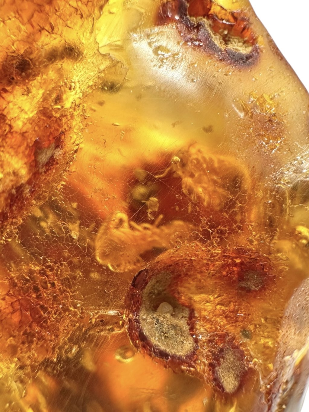V kolumbijském jantaru se mohou uchovávat fosilní zbytky různých druhů pravěkého hmyzu (např. mravenci, termiti, komáři, vosy, brouci), pavoukovců i zbytky rostlinného materiálu (vlákna, úlomky listů, pylová zrna). Objevují se i vzácnější inkluze, jako jsou malé kousky lišejníků či mechorostů, které dokládají bohatou vegetaci a specifické podmínky tropického pásma.