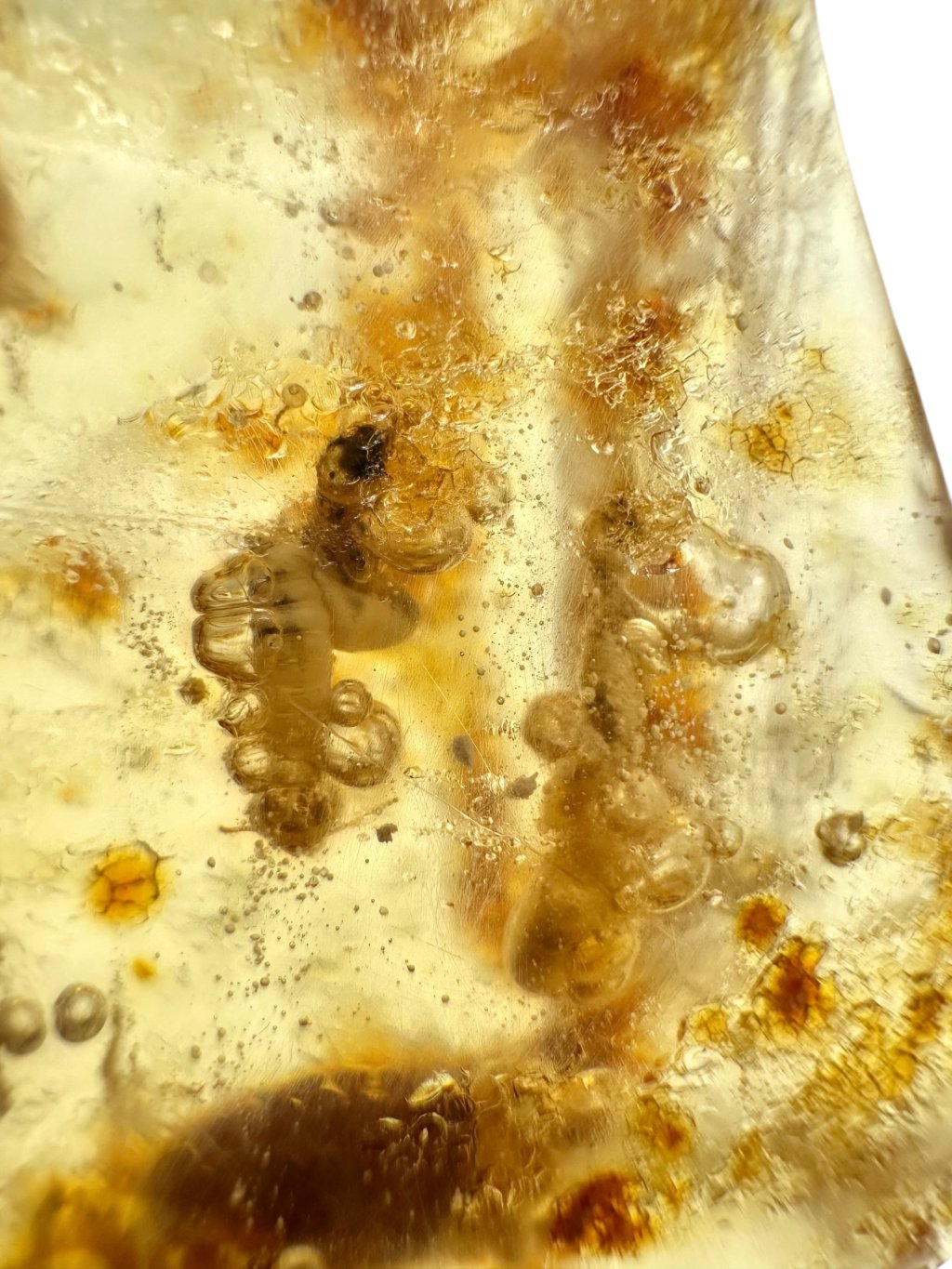 V kolumbijském jantaru se mohou uchovávat fosilní zbytky různých druhů pravěkého hmyzu (např. mravenci, termiti, komáři, vosy, brouci), pavoukovců i zbytky rostlinného materiálu (vlákna, úlomky listů, pylová zrna). Objevují se i vzácnější inkluze, jako jsou malé kousky lišejníků či mechorostů, které dokládají bohatou vegetaci a specifické podmínky tropického pásma.