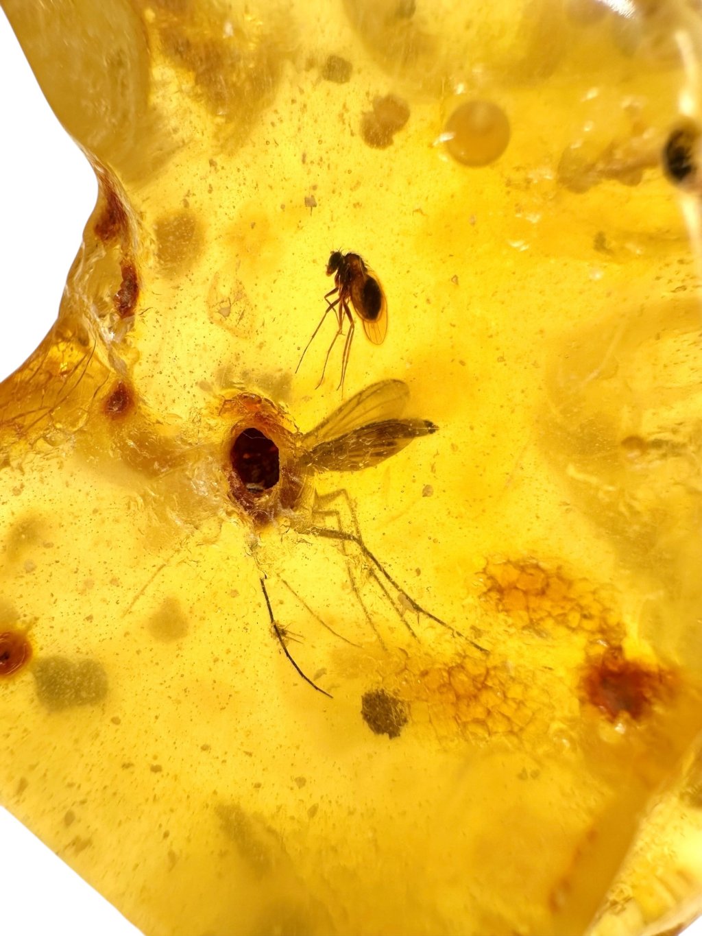 V kolumbijském jantaru se mohou uchovávat fosilní zbytky různých druhů pravěkého hmyzu (např. mravenci, termiti, komáři, vosy, brouci), pavoukovců i zbytky rostlinného materiálu (vlákna, úlomky listů, pylová zrna). Objevují se i vzácnější inkluze, jako jsou malé kousky lišejníků či mechorostů, které dokládají bohatou vegetaci a specifické podmínky tropického pásma.