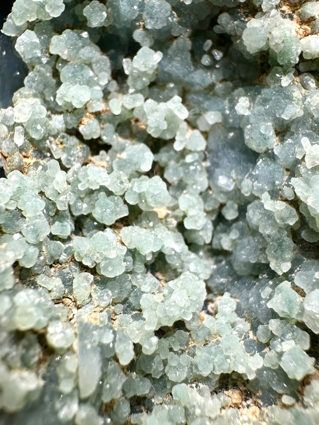 Hroznové chalcedony jsou relativně novým objevem na trhu s minerály. První vzorky byly nalezeny v roce 2016 na indonéském ostrově Sulawesi v Indonésii, konkrétně v oblasti Manakarra. Hroznový chalcedon je odrůdou křemene a vyznačuje se charakteristickými kulovitými agregáty zvanými sférolity, které vznikají vysrážením z rosolovitých roztoků bohatých na oxid křemičitý (SiO₂). Tyto kulovité struktury, často v rozměrech až do 1 cm, jsou tvořeny jemnými vlákny stejné délky, která jsou k sobě těsně přiložena. Jednotlivé kuličky jsou často srostlé k sobě nebo k podložní hornině, což vytváří tvar připomínající hroznové víno, což vedlo k jejich názvu.