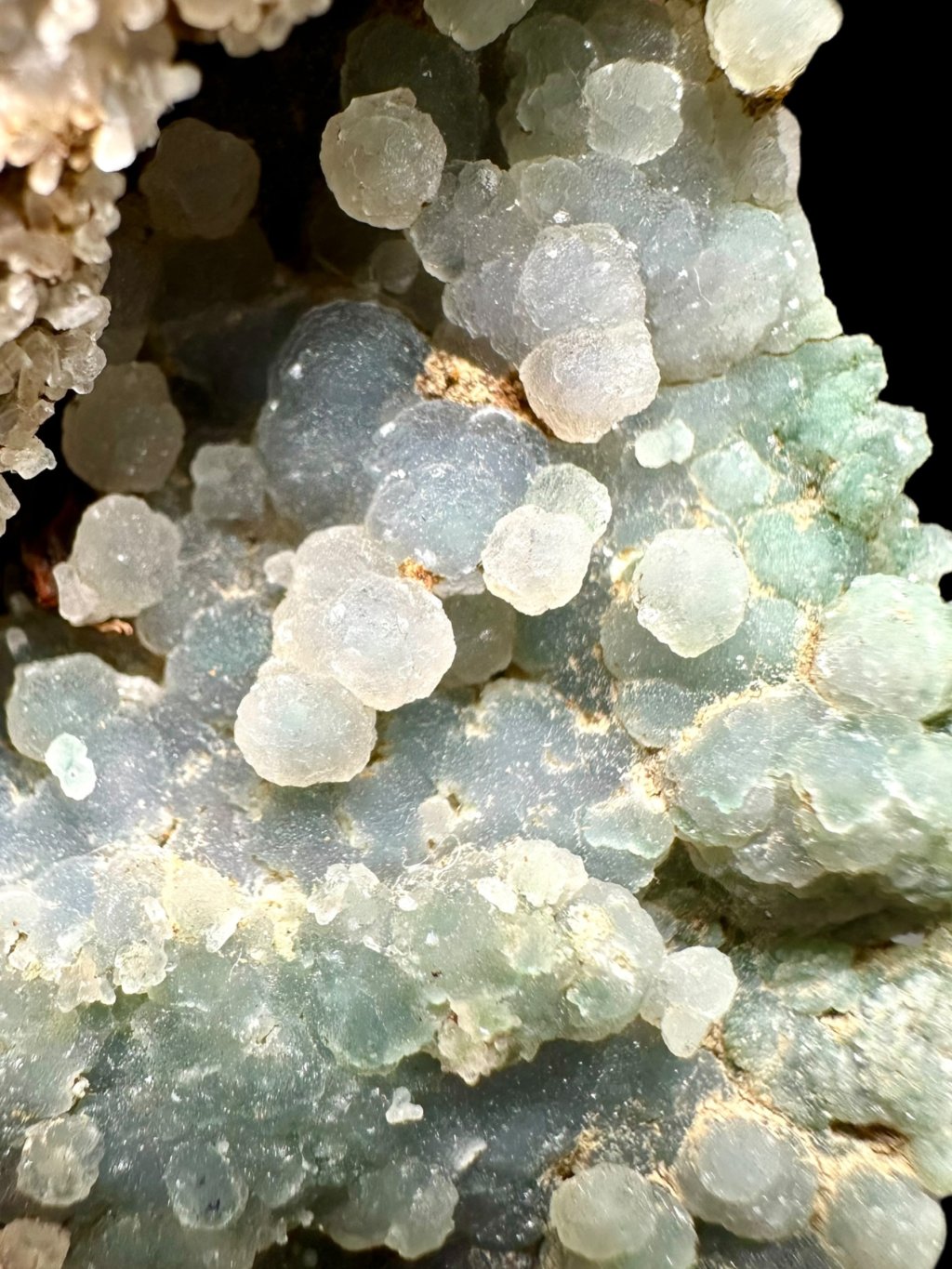 Hroznové chalcedony jsou relativně novým objevem na trhu s minerály. První vzorky byly nalezeny v roce 2016 na indonéském ostrově Sulawesi v Indonésii, konkrétně v oblasti Manakarra. Hroznový chalcedon je odrůdou křemene a vyznačuje se charakteristickými kulovitými agregáty zvanými sférolity, které vznikají vysrážením z rosolovitých roztoků bohatých na oxid křemičitý (SiO₂). Tyto kulovité struktury, často v rozměrech až do 1 cm, jsou tvořeny jemnými vlákny stejné délky, která jsou k sobě těsně přiložena. Jednotlivé kuličky jsou často srostlé k sobě nebo k podložní hornině, což vytváří tvar připomínající hroznové víno, což vedlo k jejich názvu.