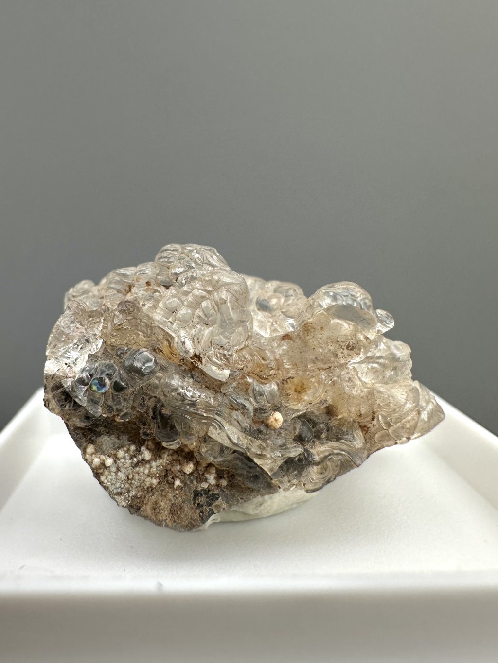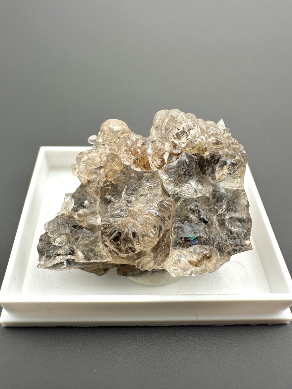 Hyalit, známý také jako skelný opál, je odrůda opálu, která se vyznačuje svou čirou, bezbarvou až jemně zbarvenou strukturou a charakteristickým sklovitým leskem. Tento minerál je tvořen oxidem křemičitým (SiO₂) a obsahuje vodu, což mu dává jeho jedinečné vlastnosti. Hyalit vzniká v důsledku hydrotermálních procesů blízko zemského povrchu, často v dutinách vyvřelých hornin, jako je čedič. V České republice je významné naleziště hyalitu v okolí obce Valeč v Doupovských horách, kde se vyskytuje ve formě hroznovitých nebo krápníkovitých agregátů.