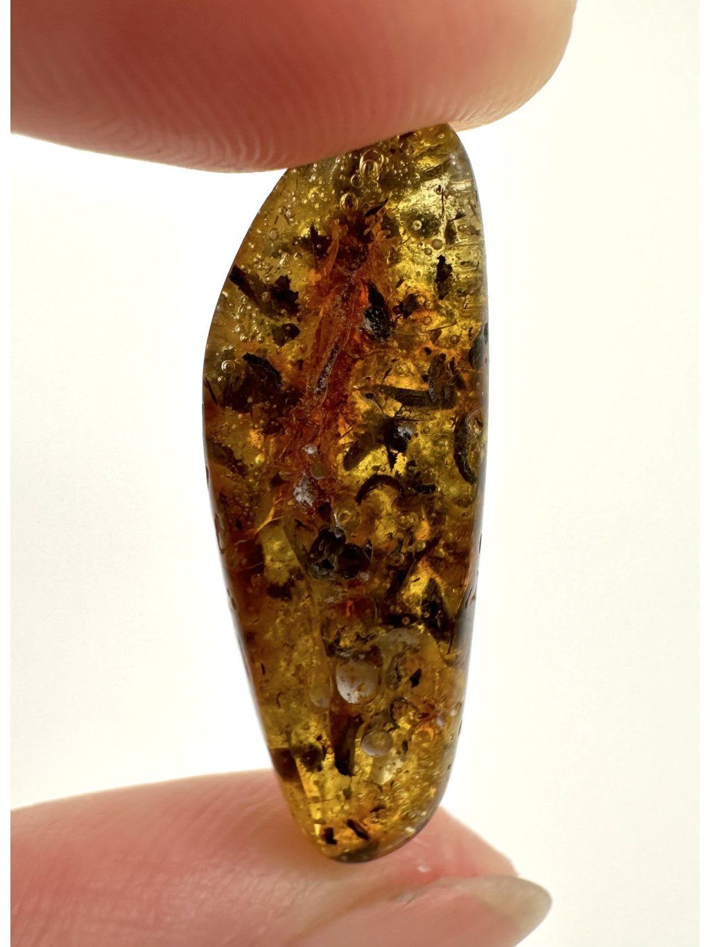 Polský jantar je známý i díky často výjimečně dobře zachovalým inkluzím. Nejčastějšími inkluzemi jsou malé fosilie pravěkého hmyzu – např. mouchy, komáři, vosy, brouci, termiti nebo mravenci. Tyto exempláře často zachovávají i jemné detaily těla a křídel. Vzácné, ale velmi zajímavé jsou rostlinné inkluze, jako jsou jehličí, pylová zrna, části listů, mechů nebo lišejníků. Tyto zbytky pocházejí z prehistorických lesů, které kdysi pokrývaly oblasti dnešní severní Evropy. Vzácnější, ale velmi působivé jsou i pavouci, stonožky, roztoči či larvy.