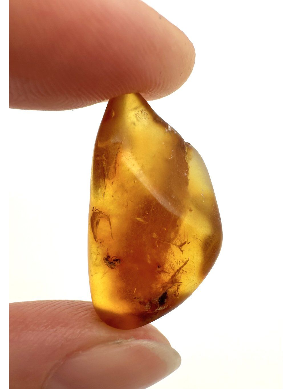 Polský jantar je známý i díky často výjimečně dobře zachovalým inkluzím. Nejčastějšími inkluzemi jsou malé fosilie pravěkého hmyzu – např. mouchy, komáři, vosy, brouci, termiti nebo mravenci. Tyto exempláře často zachovávají i jemné detaily těla a křídel. Vzácné, ale velmi zajímavé jsou rostlinné inkluze, jako jsou jehličí, pylová zrna, části listů, mechů nebo lišejníků. Tyto zbytky pocházejí z prehistorických lesů, které kdysi pokrývaly oblasti dnešní severní Evropy. Vzácnější, ale velmi působivé jsou i pavouci, stonožky, roztoči či larvy.