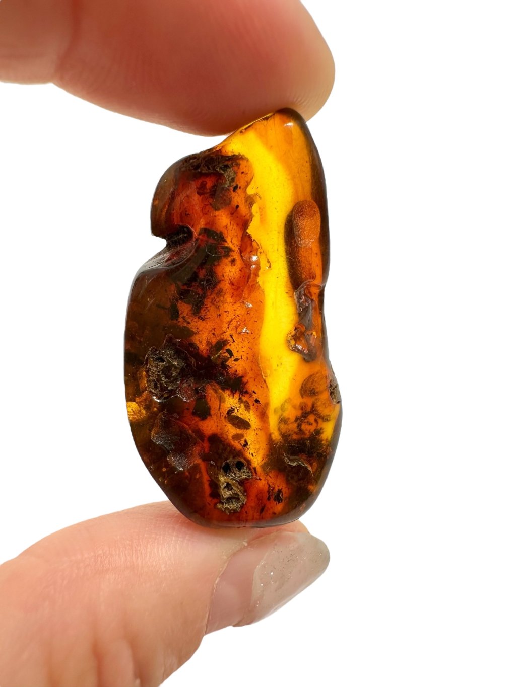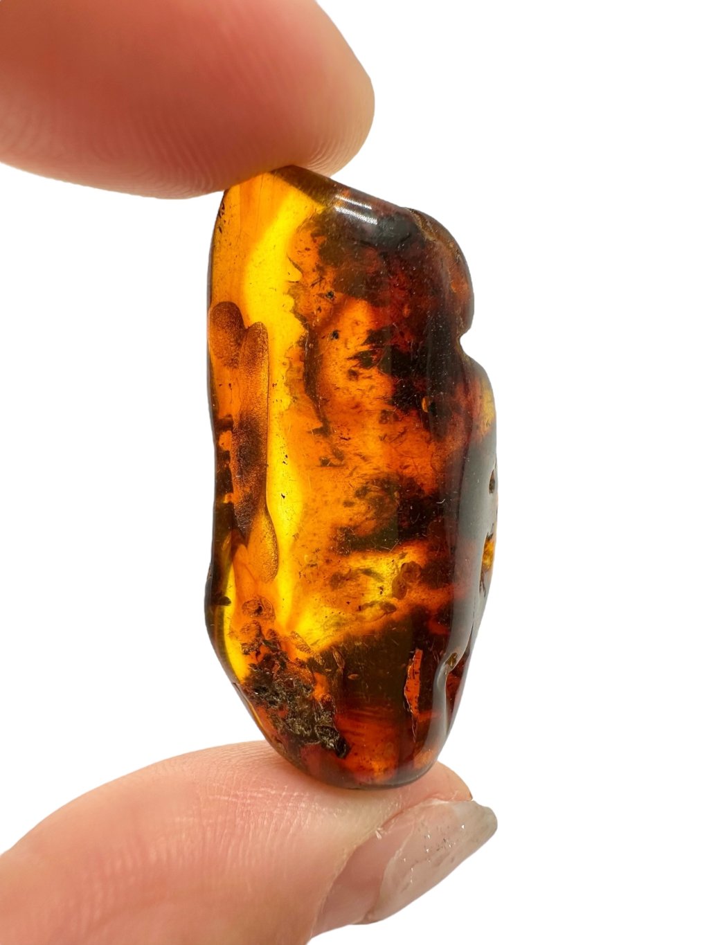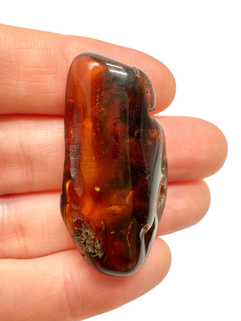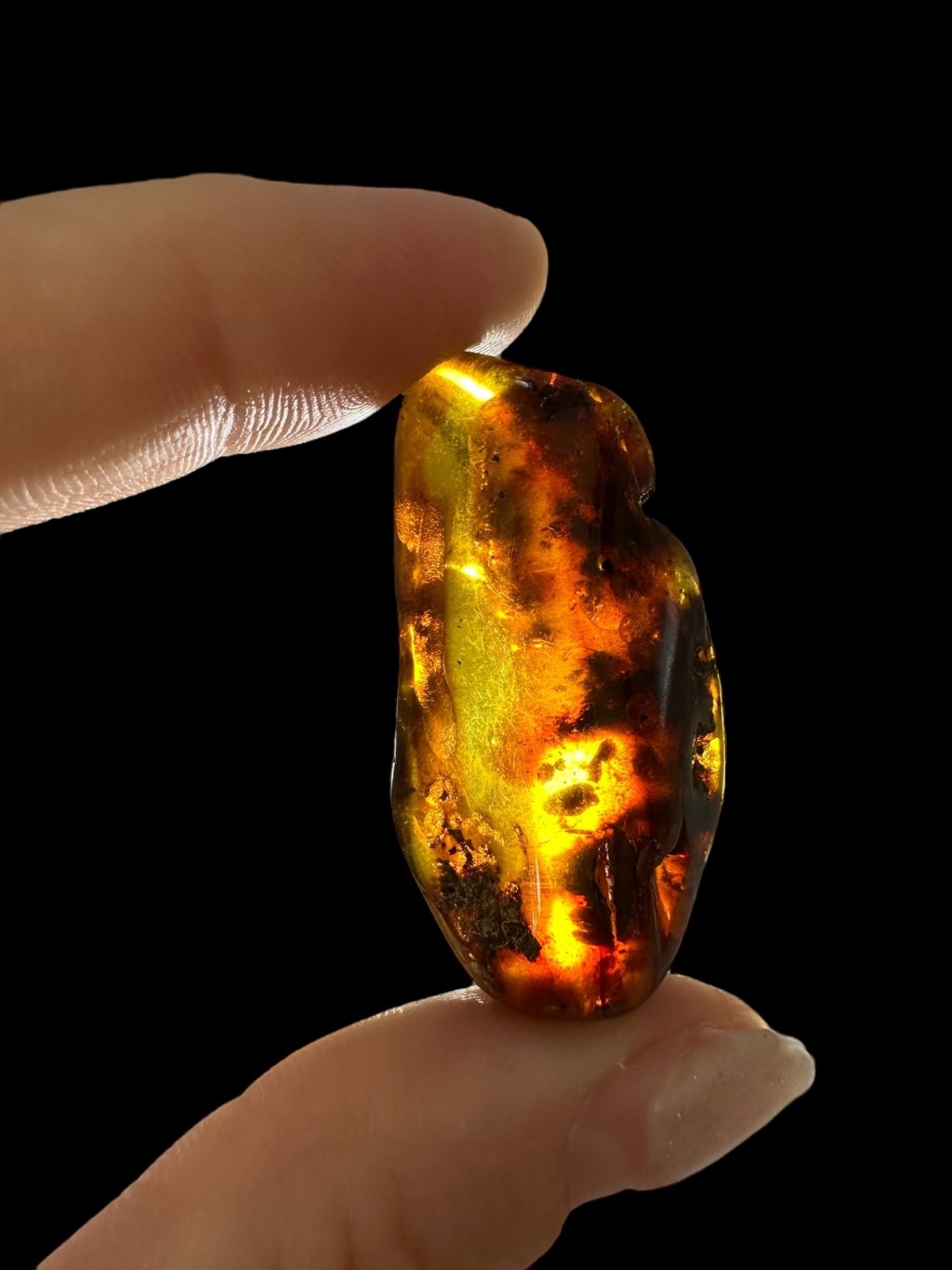 Poznámka: Úvodní fotografie byla pořízena s jantarem drženým mezi prsty, takže skrz něj prochází světlo a působí světlejším dojmem, než když je položen na povrchu.