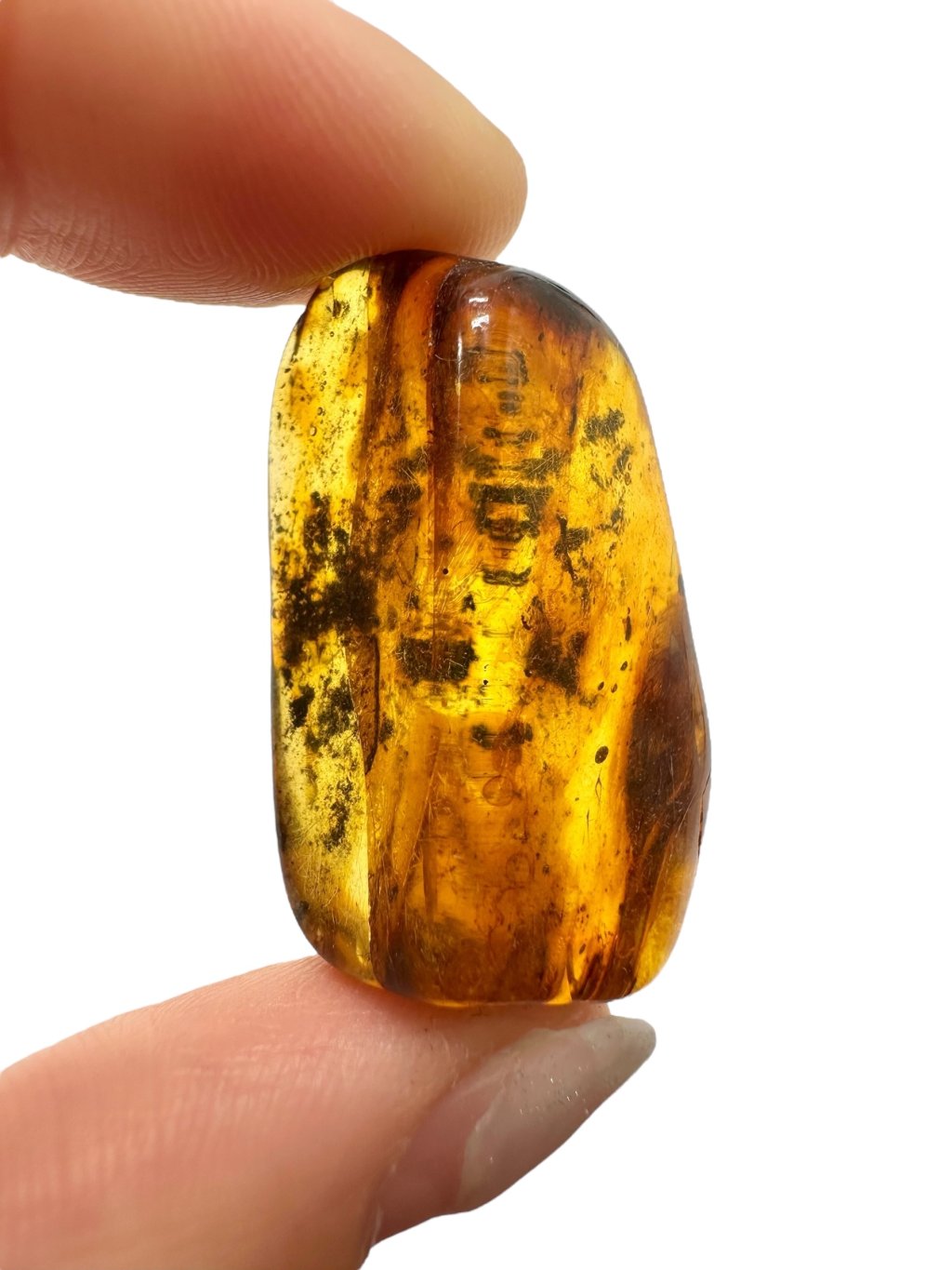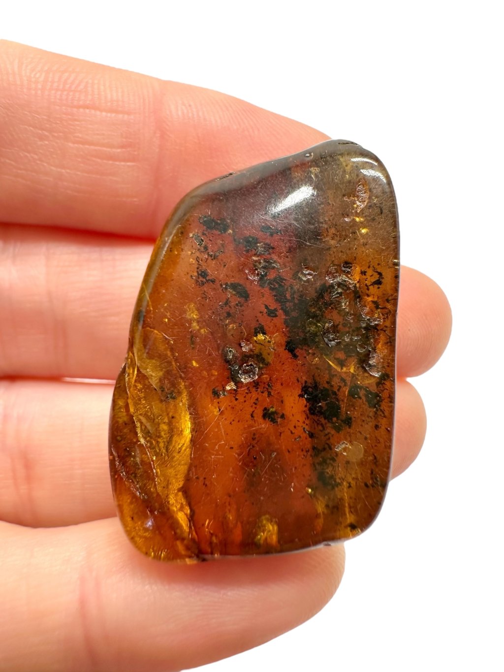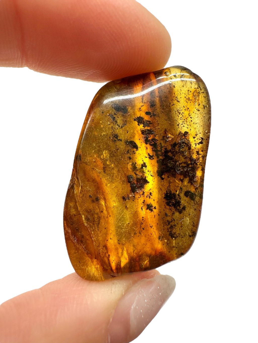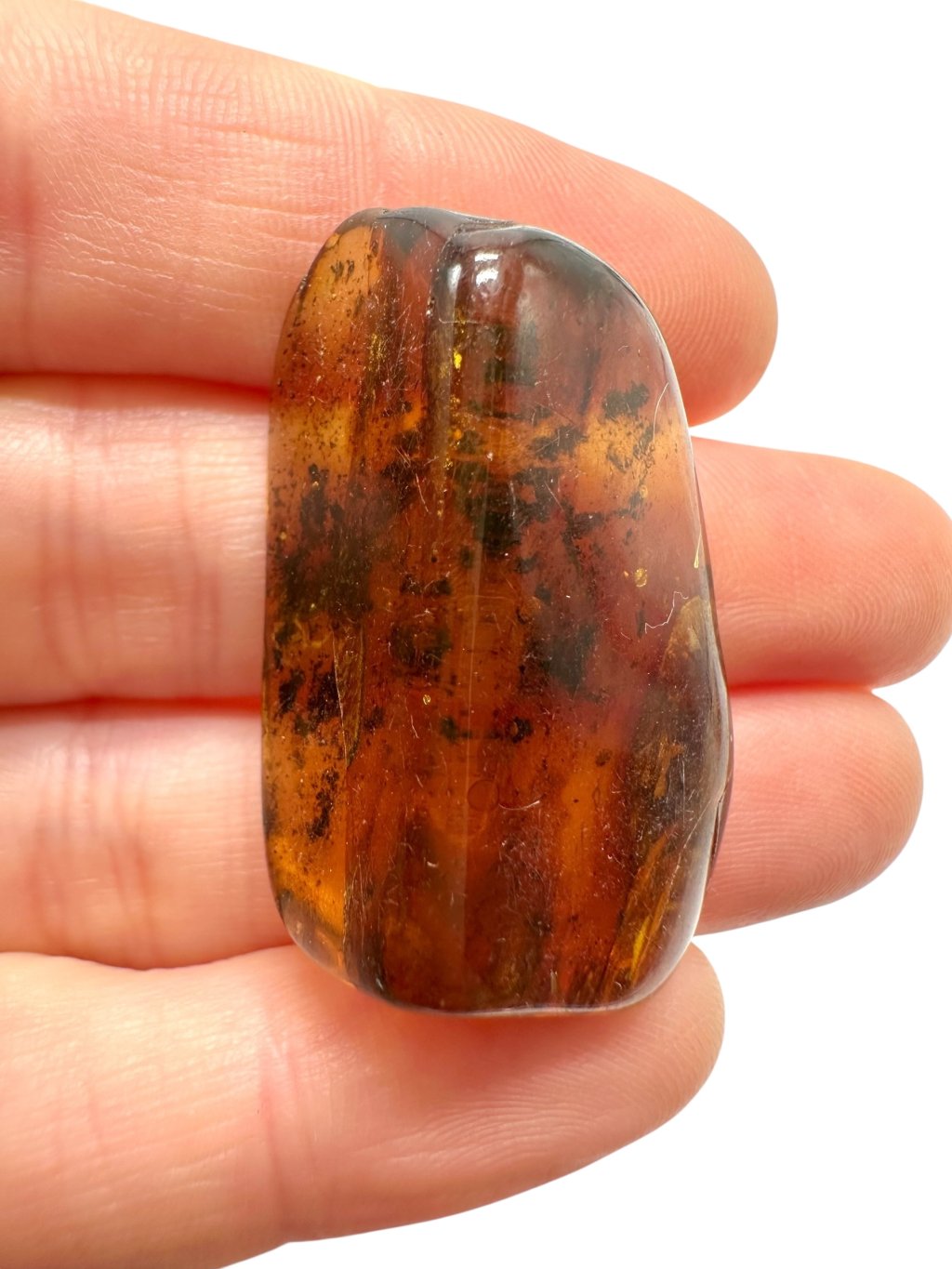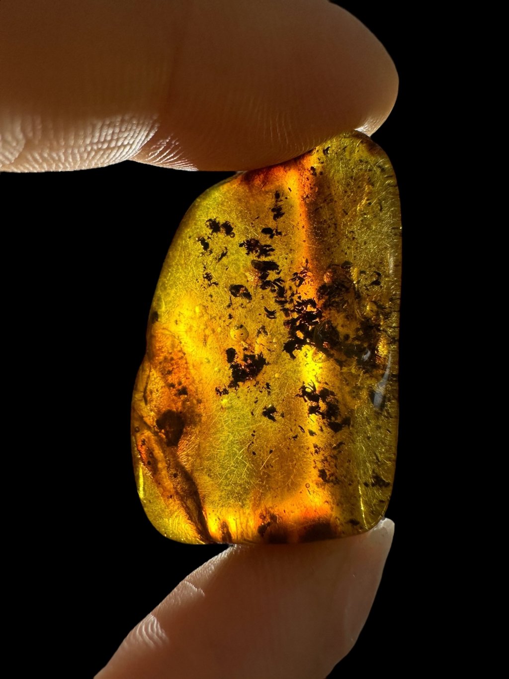 Poznámka: Úvodní fotografie byla pořízena s jantarem drženým mezi prsty, takže skrz něj prochází světlo a působí světlejším dojmem, než když je položen na povrchu.