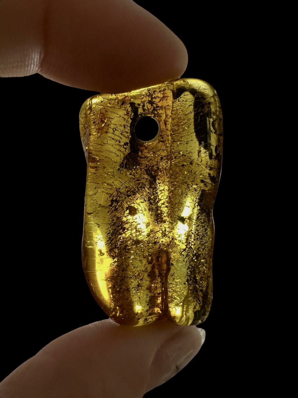 Jantar s vyvrtanou dírkou na zavěšení – Litva