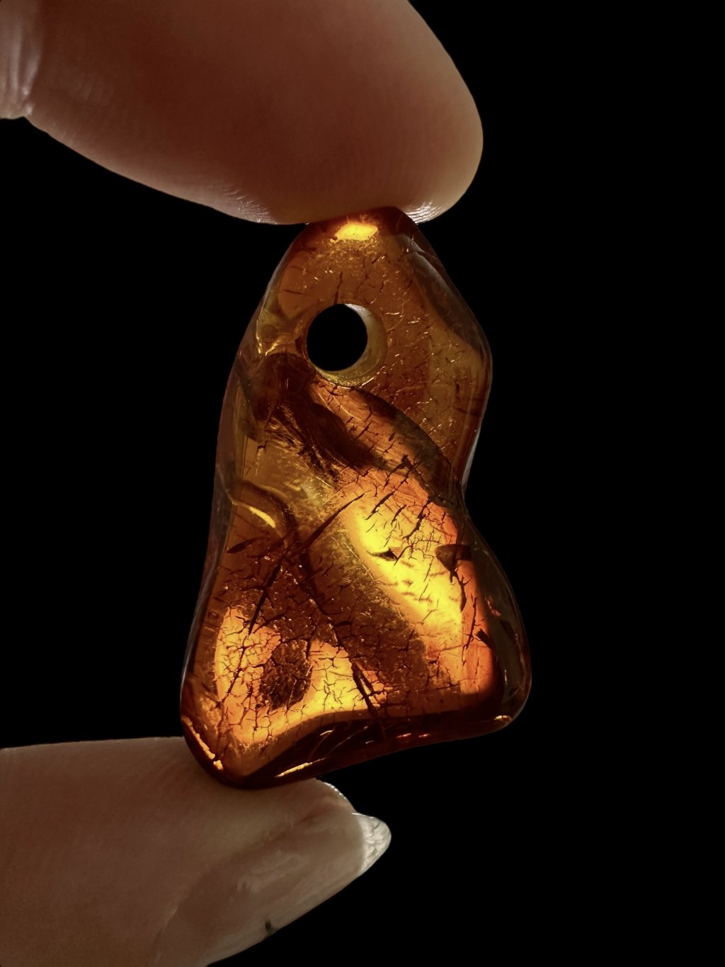 Jantar s vyvrtanou dírkou na zavěšení – Litva