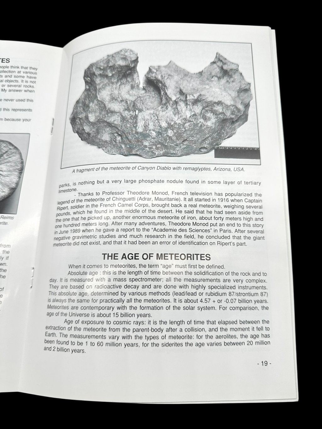Skvělá kniha, která poskytuje ucelený a komplexní úvod do světa meteoritů. Je přeložena z francouzského originálu do angličtiny a je plná vynikajících fotografií. Nezbytná součást každé sbírky knih o meteoritech a zároveň jedna z našich doporučených knih pro začínající sběratele meteoritů.