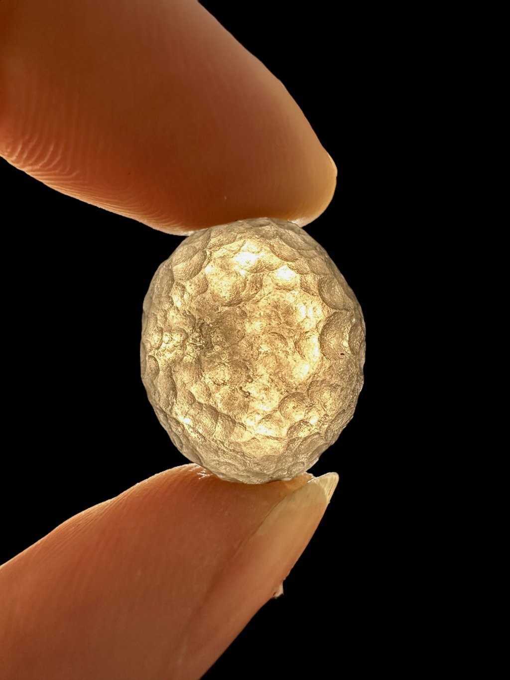 Kolumbianit je sopečné sklo, podobné obsidiánu, které vzniklo rychlým ochlazováním roztavené lávy na povrchu Země. Jeho unikátní chemické složení a struktura mu dodávají charakteristický vzhled a vlastnosti. Kolumbianit je známý svou barvou při průsvitu, která je zbarvena do šedo-hnědých odstínů díky přítomnosti různých minerálů během jeho tvorby. Jeho povrch je jamkovitý, což zapříčinilo působení půdních kyselin, stejně tak jako u vltavínů. Kolumbianit je často vyhledáván pro svou krásu a exotický původ, což ho činí ceněným materiálem pro šperkařství a sběratelství. S kolumbianitem získáte do své sbírky kamenů jedinečný kousek přírody, který zaujme svým vzhledem a původem.