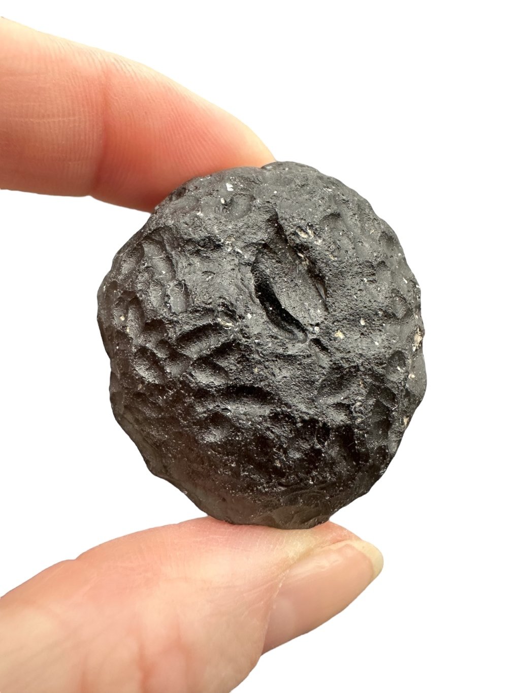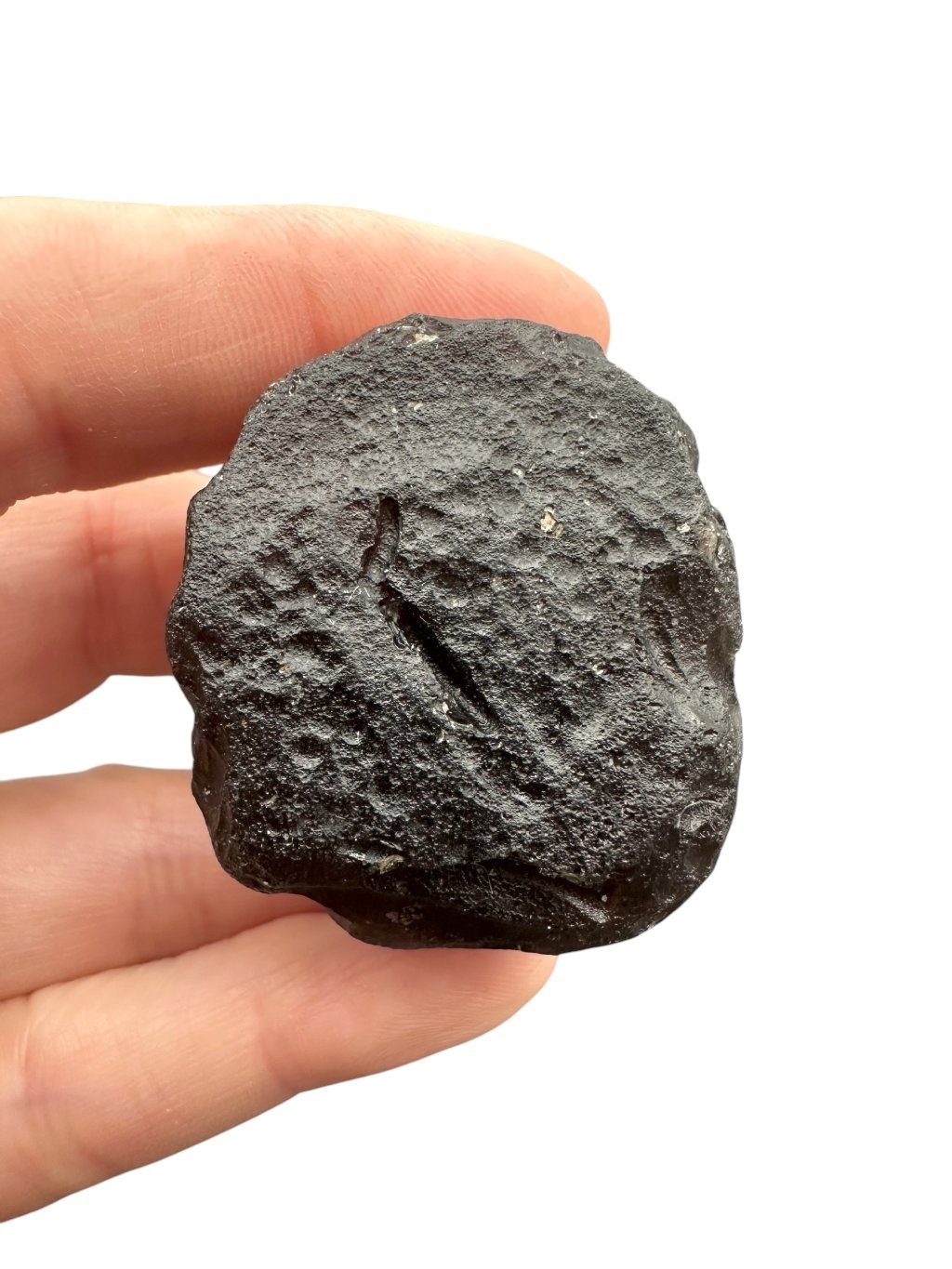 Kolumbianit je sopečné sklo, podobné obsidiánu, které vzniklo rychlým ochlazováním roztavené lávy na povrchu Země. Jeho unikátní chemické složení a struktura mu dodávají charakteristický vzhled a vlastnosti. Kolumbianit je známý svou barvou při průsvitu, která je zbarvena do šedo-hnědých odstínů díky přítomnosti různých minerálů během jeho tvorby. Jeho povrch je jamkovitý, což zapříčinilo působení půdních kyselin, stejně tak jako u vltavínů. Kolumbianit je často vyhledáván pro svou krásu a exotický původ, což ho činí ceněným materiálem pro šperkařství a sběratelství. S kolumbianitem získáte do své sbírky kamenů jedinečný kousek přírody, který zaujme svým vzhledem a původem.