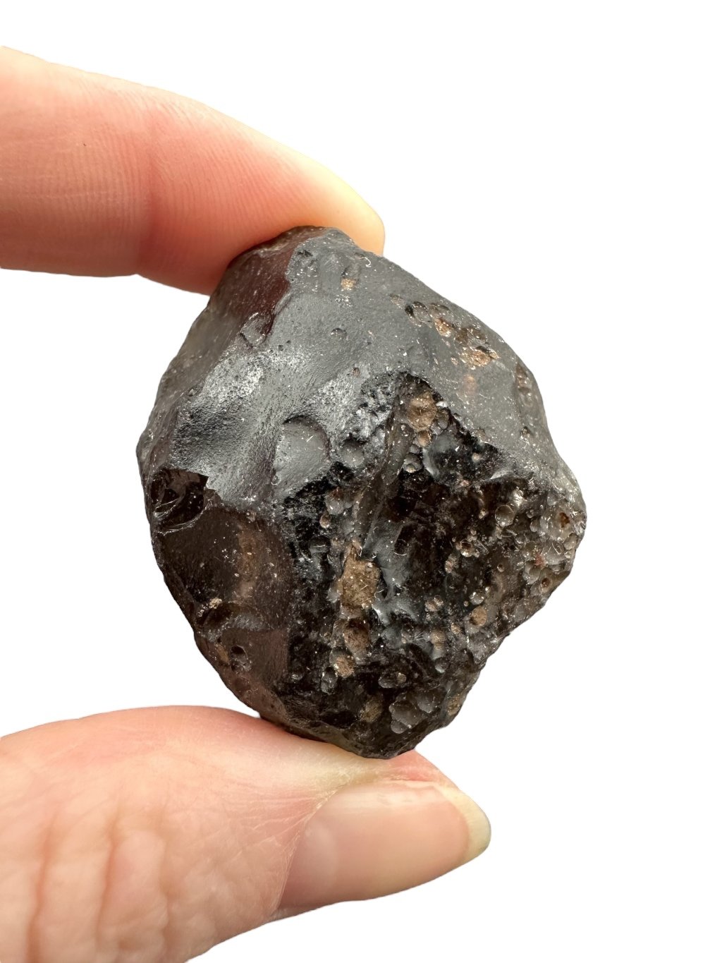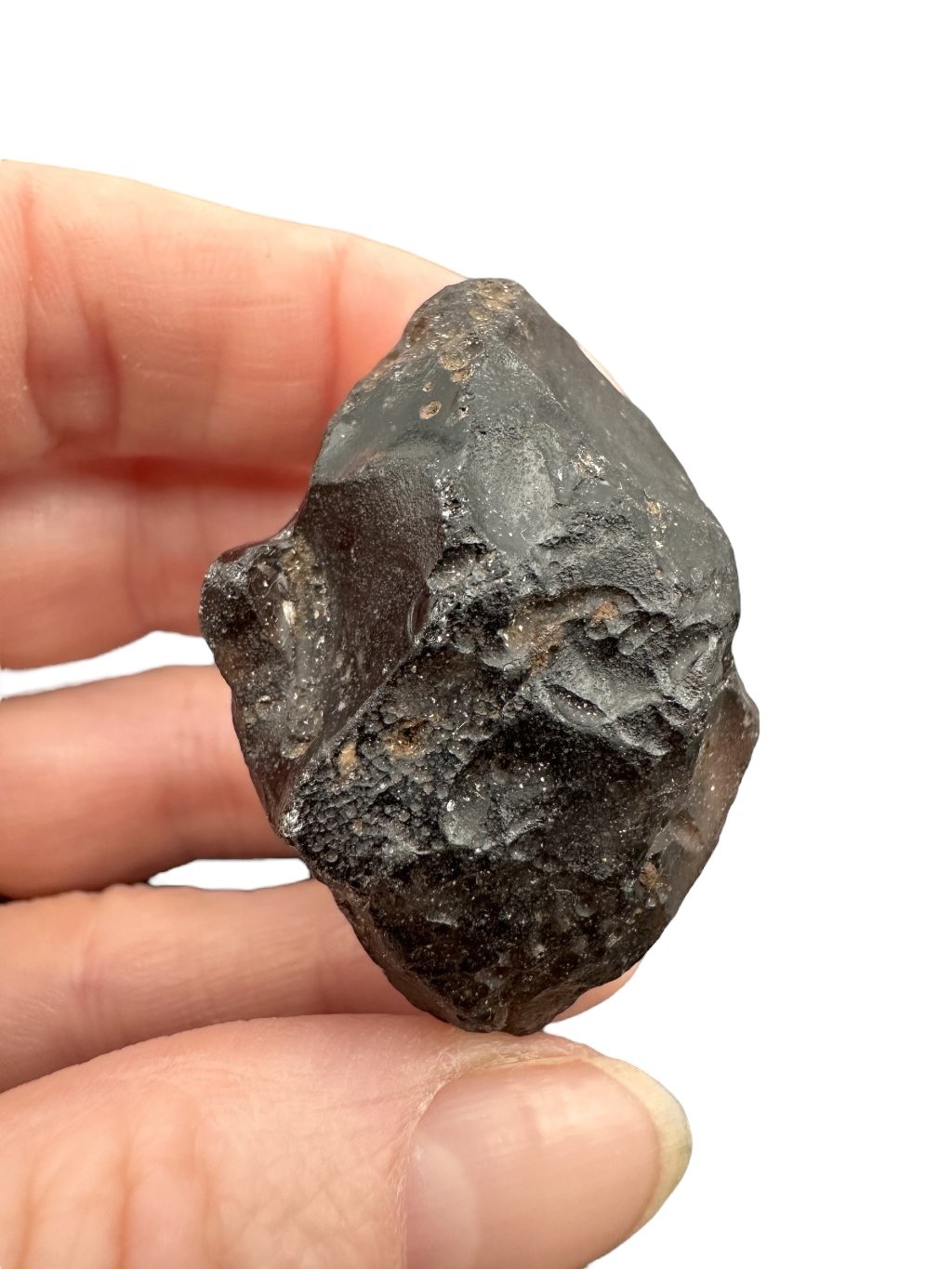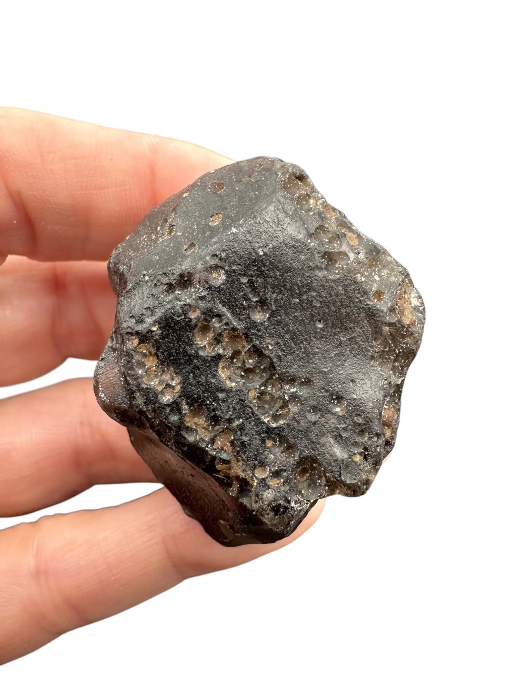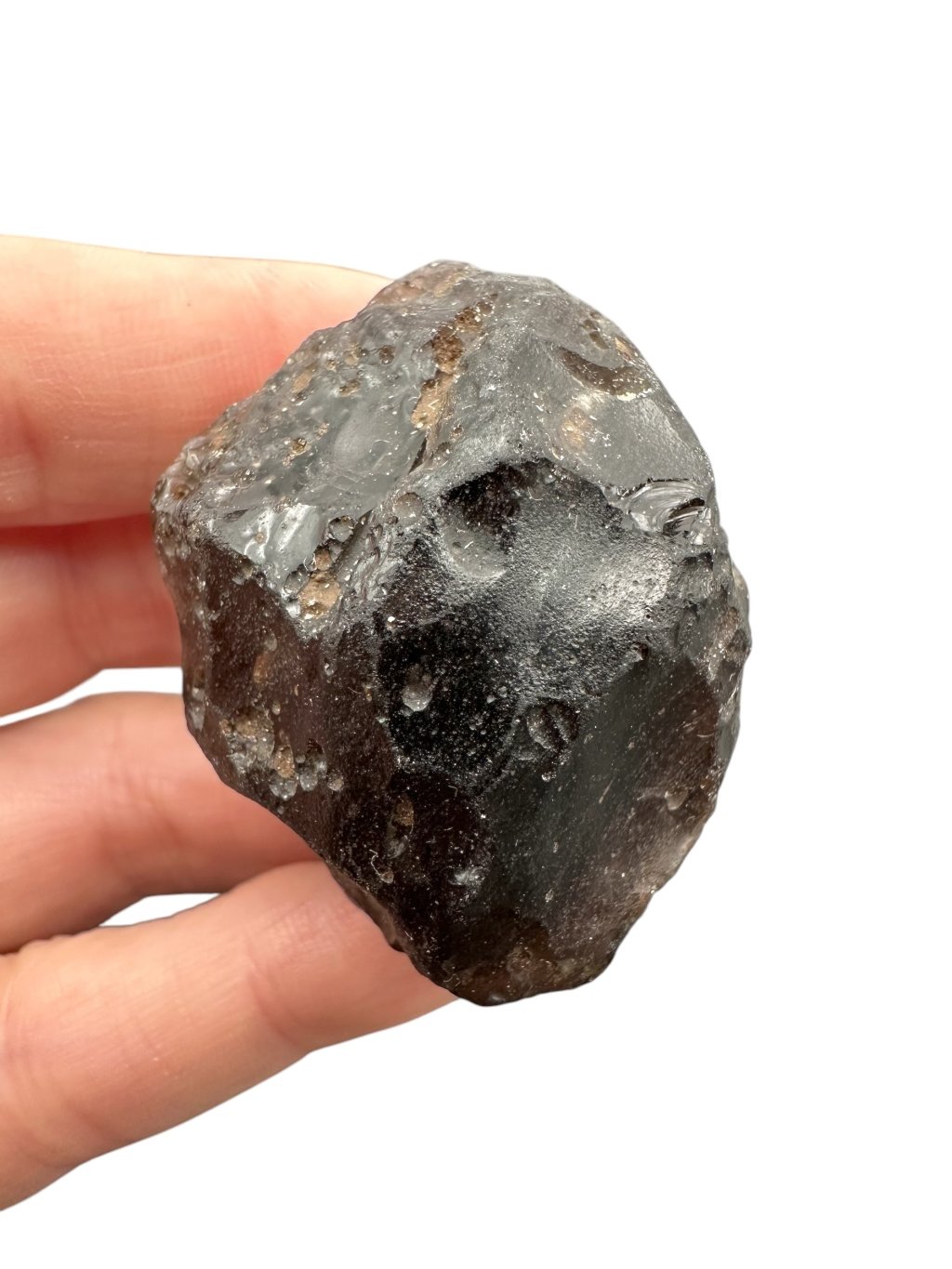 Kolumbianit je sopečné sklo, podobné obsidiánu, které vzniklo rychlým ochlazováním roztavené lávy na povrchu Země. Jeho unikátní chemické složení a struktura mu dodávají charakteristický vzhled a vlastnosti. Kolumbianit je známý svou barvou při průsvitu, která je zbarvena do šedo-hnědých odstínů díky přítomnosti různých minerálů během jeho tvorby. Jeho povrch je jamkovitý, což zapříčinilo působení půdních kyselin, stejně tak jako u vltavínů. Kolumbianit je často vyhledáván pro svou krásu a exotický původ, což ho činí ceněným materiálem pro šperkařství a sběratelství. S kolumbianitem získáte do své sbírky kamenů jedinečný kousek přírody, který zaujme svým vzhledem a původem.