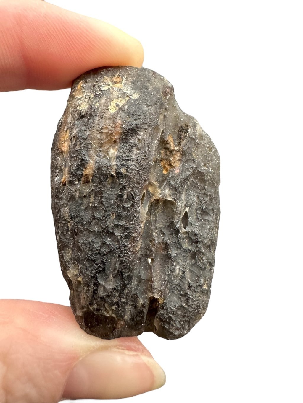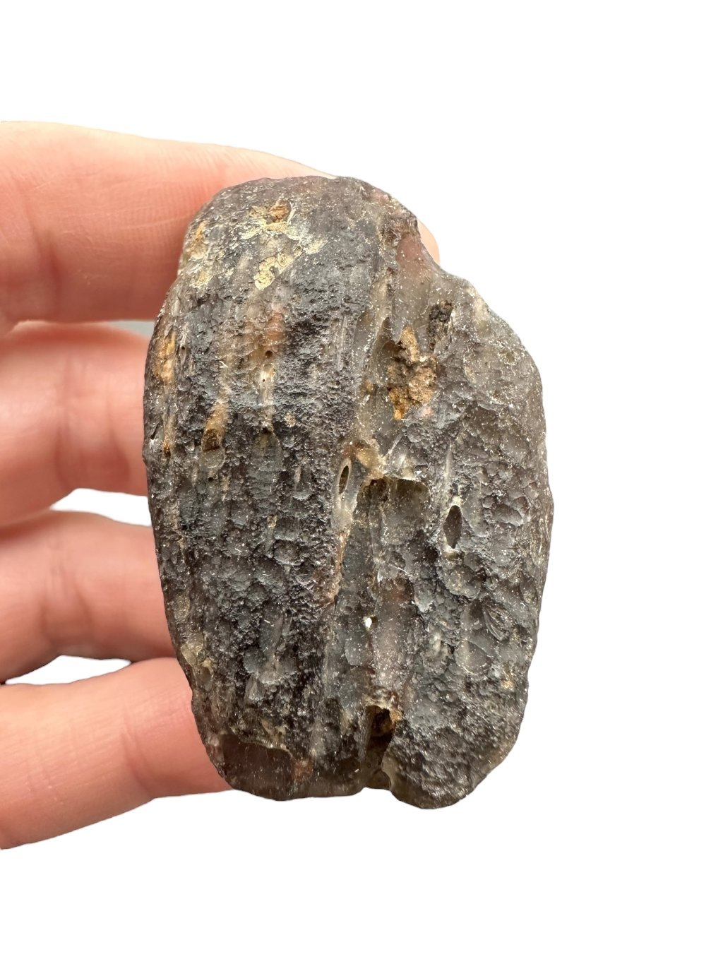 Kolumbianit je sopečné sklo, podobné obsidiánu, které vzniklo rychlým ochlazováním roztavené lávy na povrchu Země. Jeho unikátní chemické složení a struktura mu dodávají charakteristický vzhled a vlastnosti. Kolumbianit je známý svou barvou při průsvitu, která je zbarvena do šedo-hnědých odstínů díky přítomnosti různých minerálů během jeho tvorby. Jeho povrch je jamkovitý, což zapříčinilo působení půdních kyselin, stejně tak jako u vltavínů. Kolumbianit je často vyhledáván pro svou krásu a exotický původ, což ho činí ceněným materiálem pro šperkařství a sběratelství. S kolumbianitem získáte do své sbírky kamenů jedinečný kousek přírody, který zaujme svým vzhledem a původem.