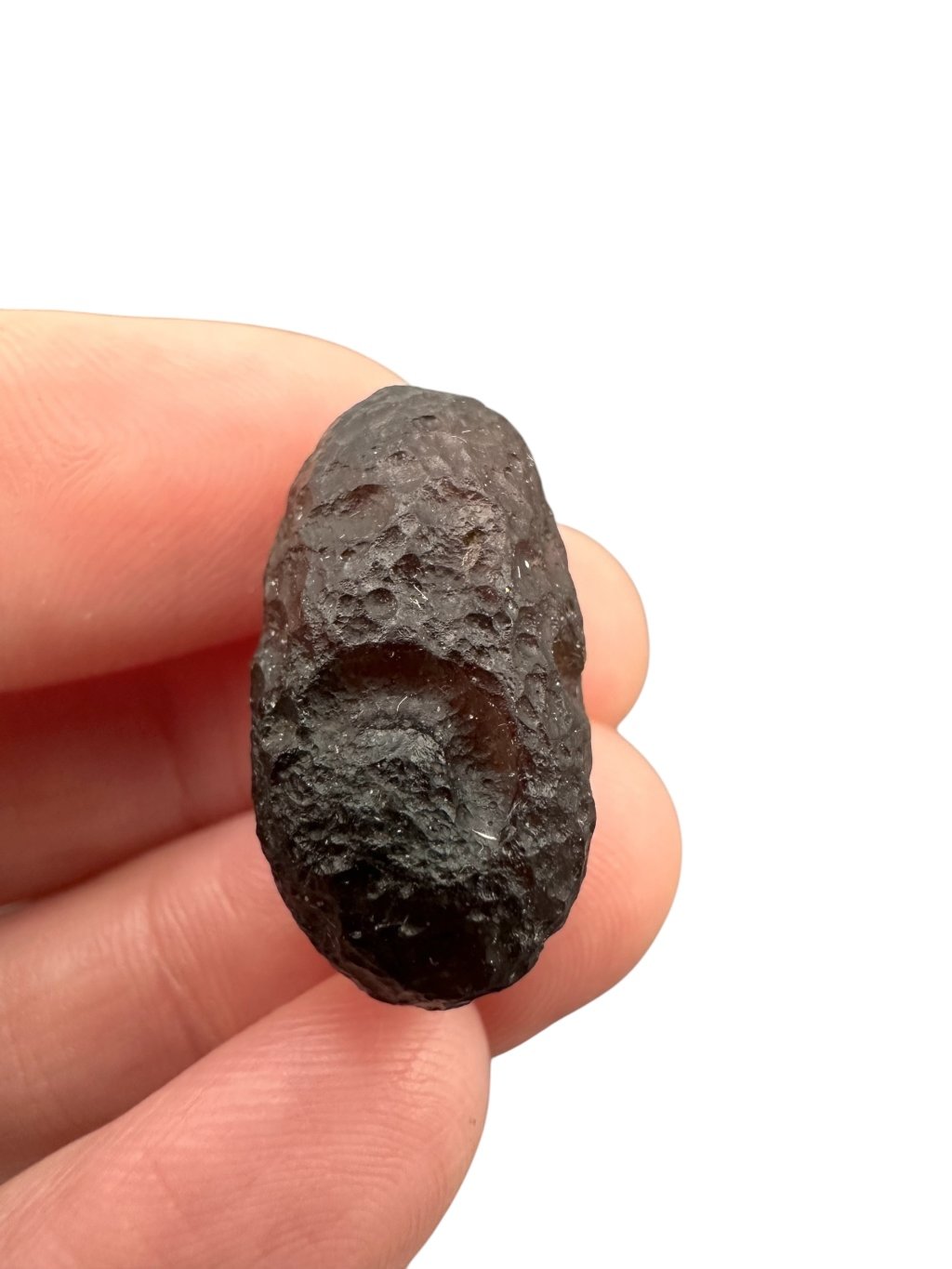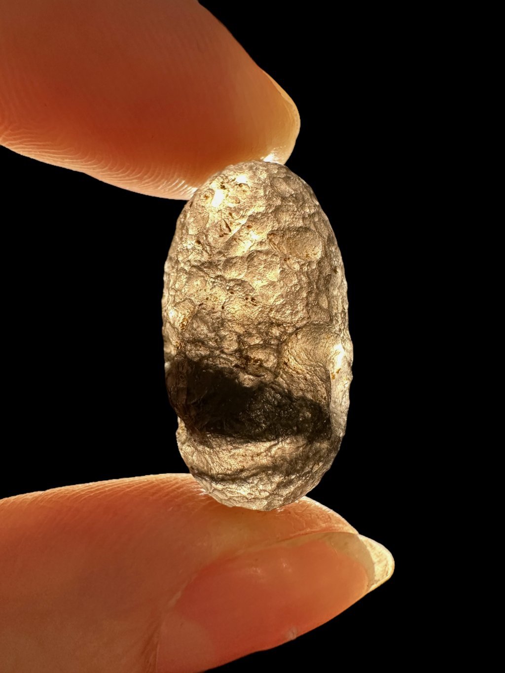 Kolumbianit je sopečné sklo, podobné obsidiánu, které vzniklo rychlým ochlazováním roztavené lávy na povrchu Země. Jeho unikátní chemické složení a struktura mu dodávají charakteristický vzhled a vlastnosti. Kolumbianit je známý svou barvou při průsvitu, která je zbarvena do šedo-hnědých odstínů díky přítomnosti různých minerálů během jeho tvorby. Jeho povrch je jamkovitý, což zapříčinilo působení půdních kyselin, stejně tak jako u vltavínů. Kolumbianit je často vyhledáván pro svou krásu a exotický původ, což ho činí ceněným materiálem pro šperkařství a sběratelství. S kolumbianitem získáte do své sbírky kamenů jedinečný kousek přírody, který zaujme svým vzhledem a původem.