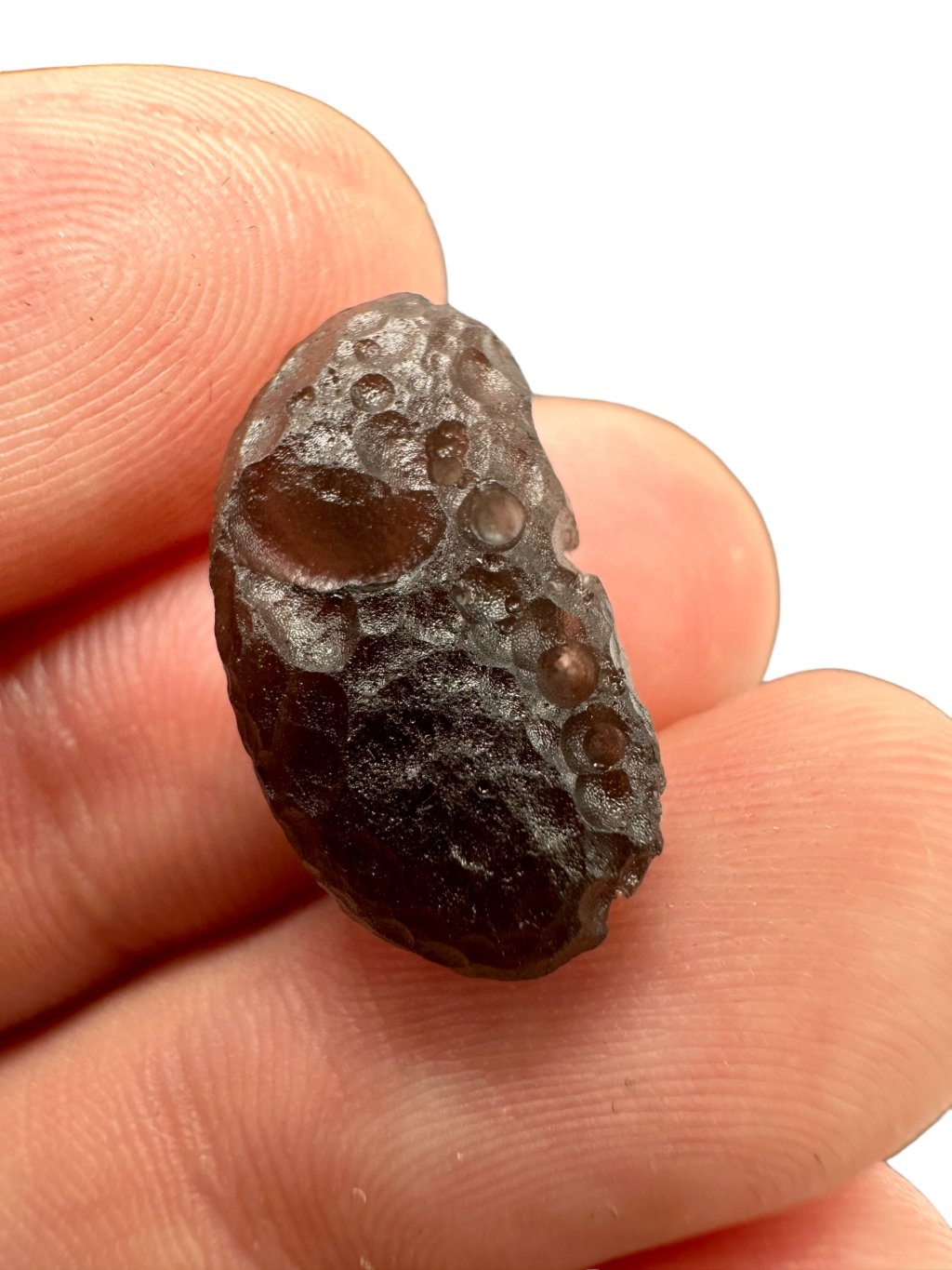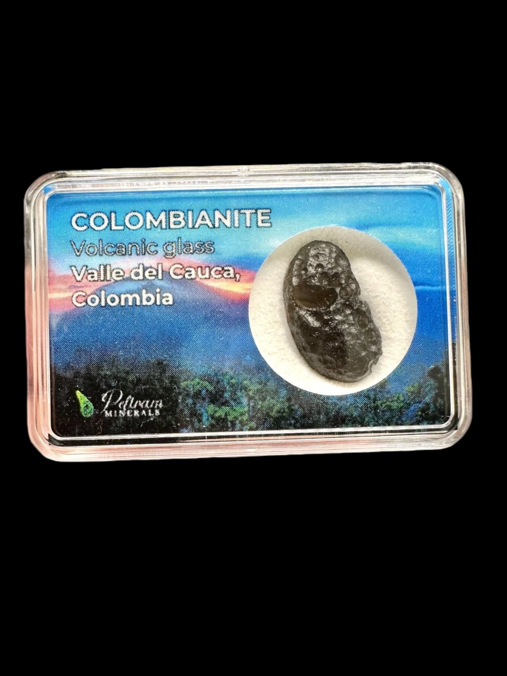 Kolumbianit je sopečné sklo, podobné obsidiánu, které vzniklo rychlým ochlazováním roztavené lávy na povrchu Země. Jeho unikátní chemické složení a struktura mu dodávají charakteristický vzhled a vlastnosti. Kolumbianit je známý svou barvou při průsvitu, která je zbarvena do šedo-hnědých odstínů díky přítomnosti různých minerálů během jeho tvorby. Jeho povrch je jamkovitý, což zapříčinilo působení půdních kyselin, stejně tak jako u vltavínů. Kolumbianit je často vyhledáván pro svou krásu a exotický původ, což ho činí ceněným materiálem pro šperkařství a sběratelství. S kolumbianitem získáte do své sbírky kamenů jedinečný kousek přírody, který zaujme svým vzhledem a původem.
