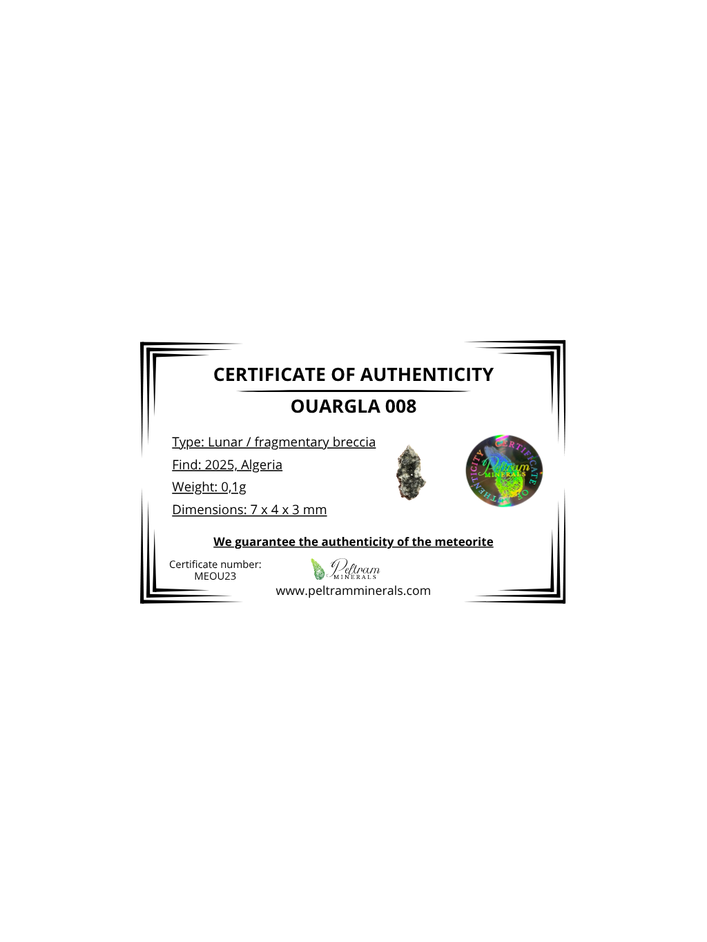 Lunární meteorit Ouargla 008 – 0,1g – Alžírsko