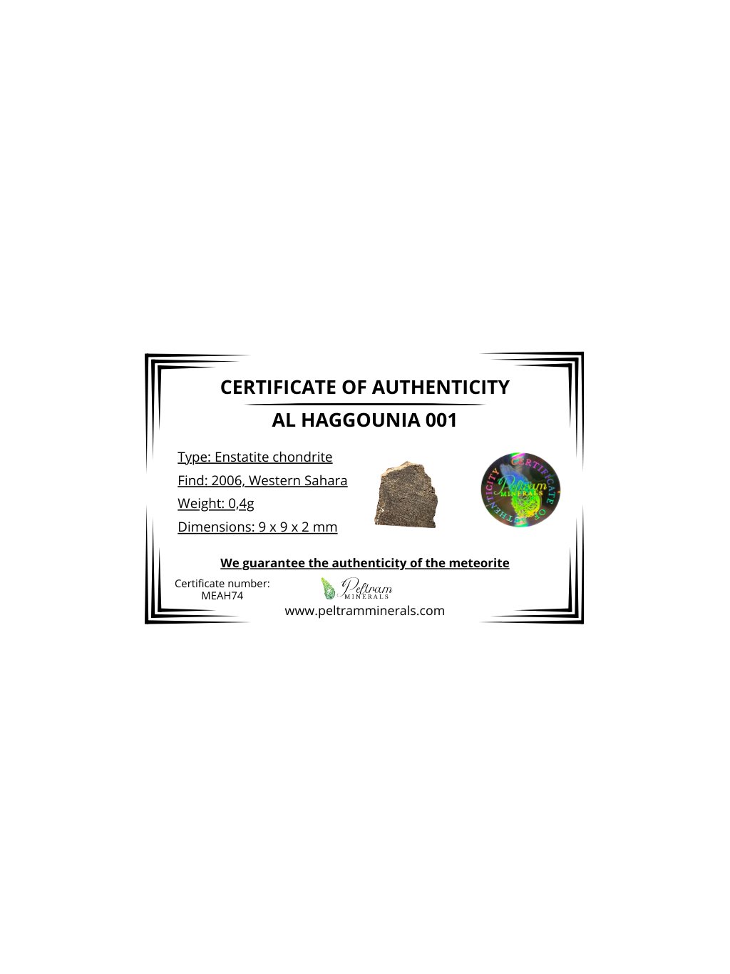 Meteorit Al Haggounia 001 – 0,4g – Západní Sahara
