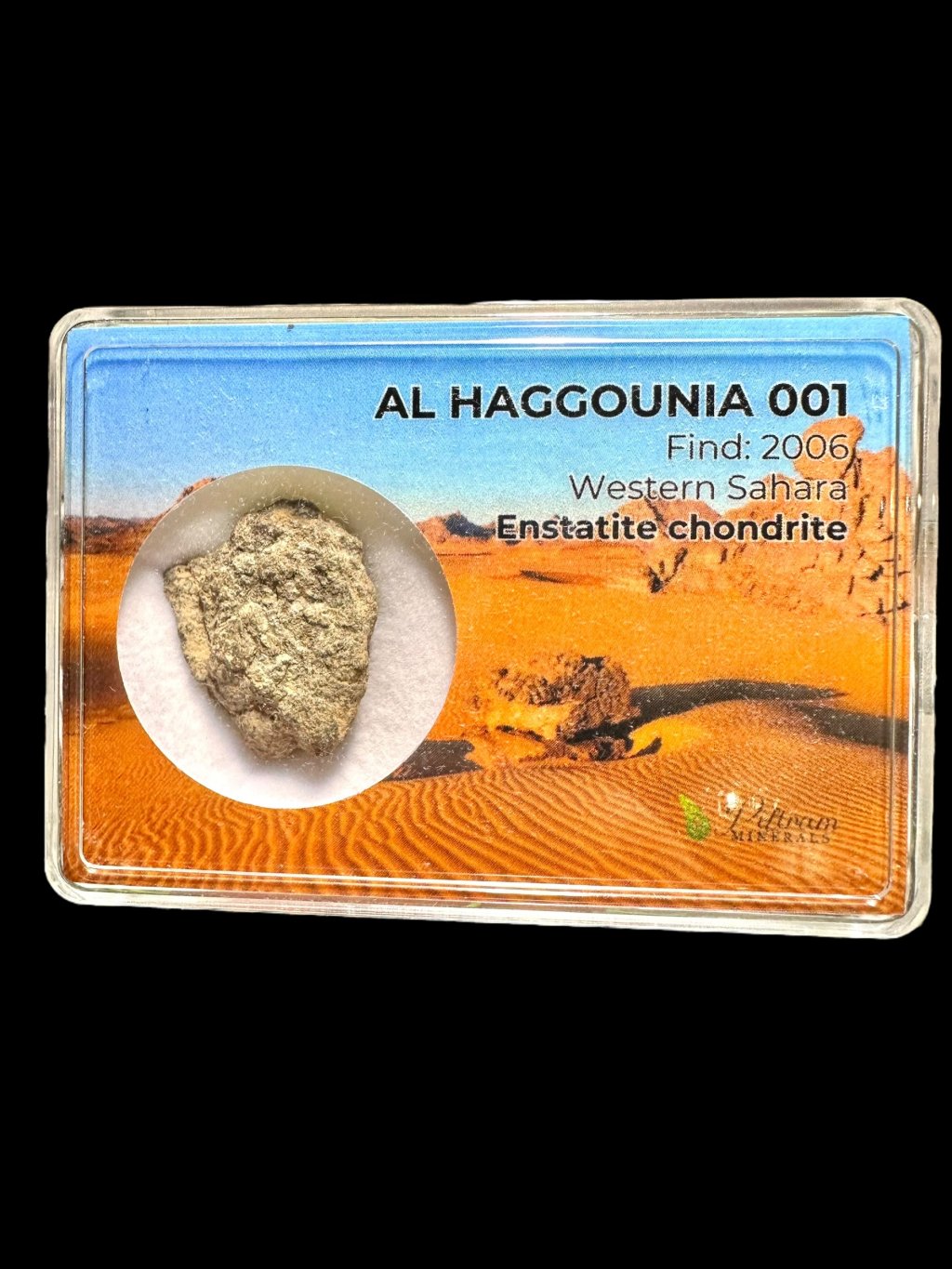 Meteorit Al Haggounia 001 byl objeven v roce 2006 poblíž Al Haggounia v Západní Sahaře. Původně byl klasifikován jako aubrit (achondrit bohatý na enstatit), avšak následné studie jej přehodnotily jako vesikulární, neúplně roztavenou impaktní taveninu enstatitového chondritu EL.