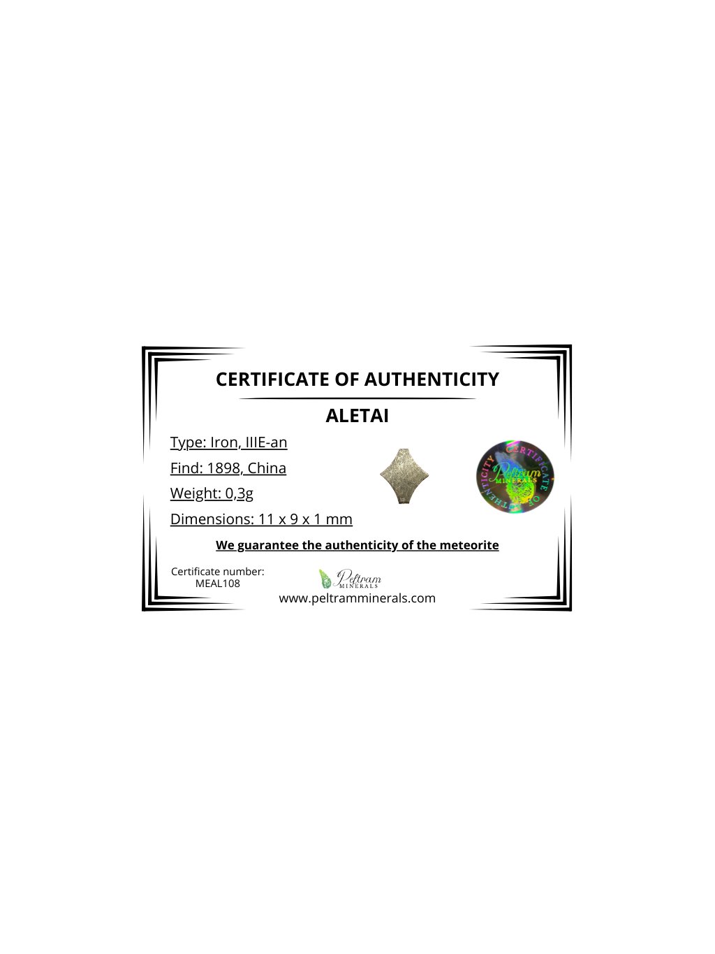 Meteorit Aletai 0,3g – Xinjiang, Čína