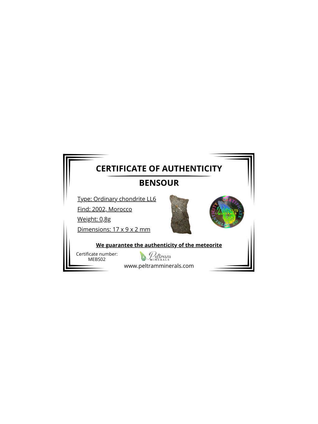 Meteorit Bensour je obyčejný chondrit typu LL6, který dopadl v Maroku v roce 2002 poblíž hranic s Alžírskem. Celková nalezená hmotnost je odhadována na více než 45 kg, přičemž největší kus váží 9,2 kg.Pád meteoritu Bensour pozorovali svědci, kteří viděli jasný objekt na obloze, slyšeli výbuchy a viděli, jak úlomky dopadly přibližně 3 kilometry od místa, kde se nacházeli.