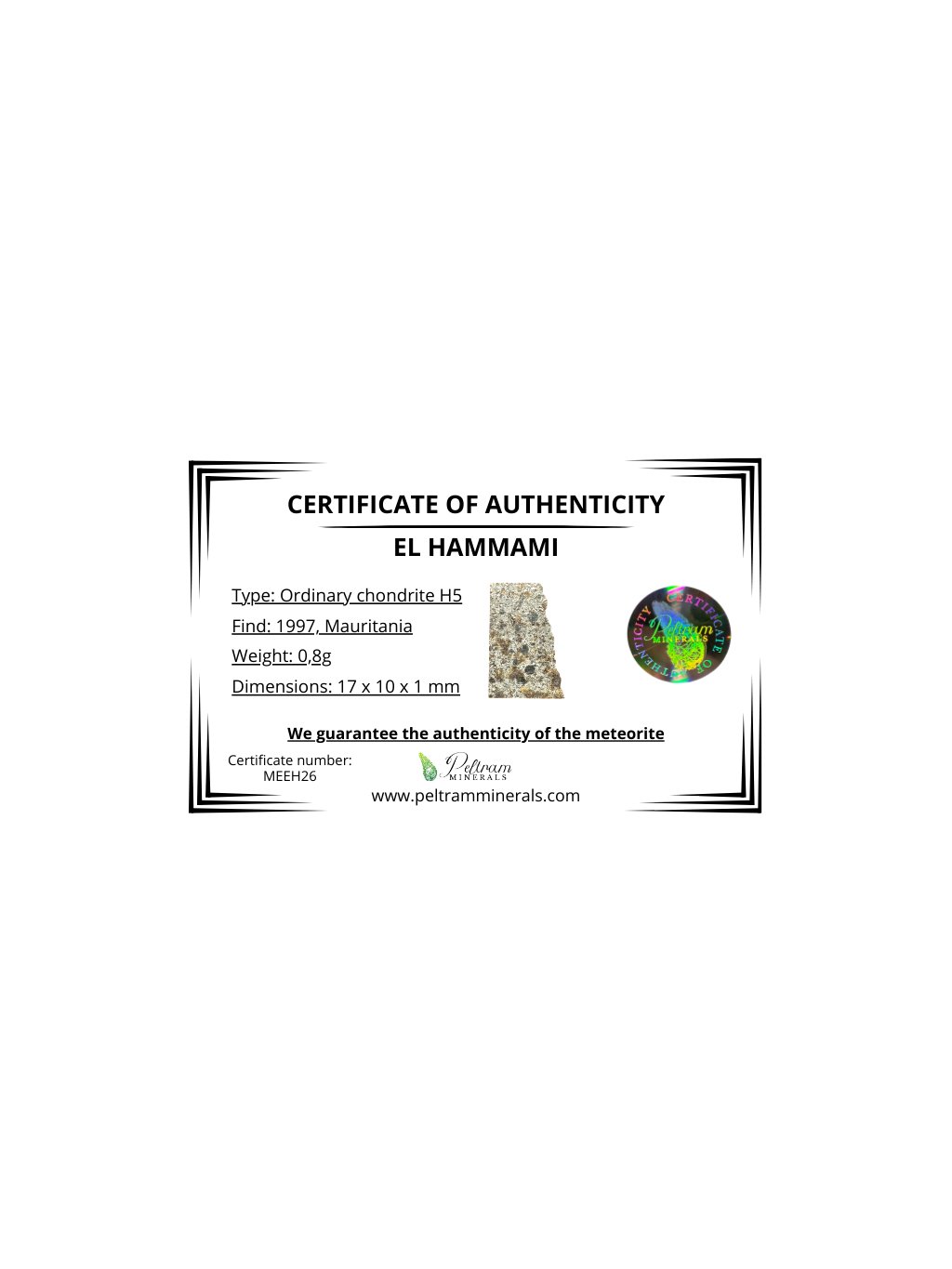 Meteorit El Hammami 0,8g – Mauritánie