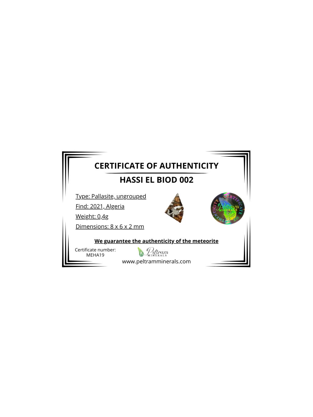 Meteorit Hassi el Biod 002 – výjimečný pallasit z Alžírska