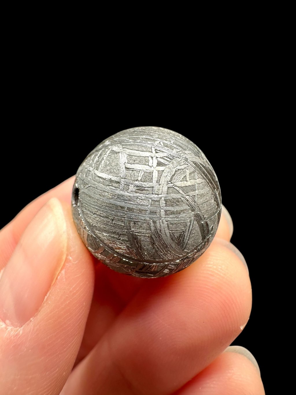Kulička z meteoritu je provrtána - vhodné na provlečení na náramek či řetízek.