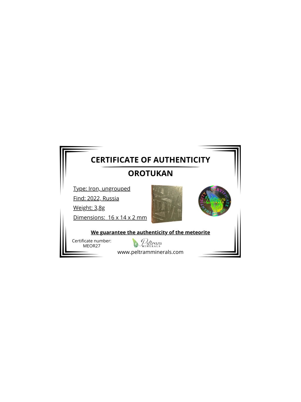 Vzhledem k nedávnému objevu jsou podrobnější informace o meteoritu Orotukan zatím omezené, což z něj činí vědecky i sběratelsky atraktivní objekt.