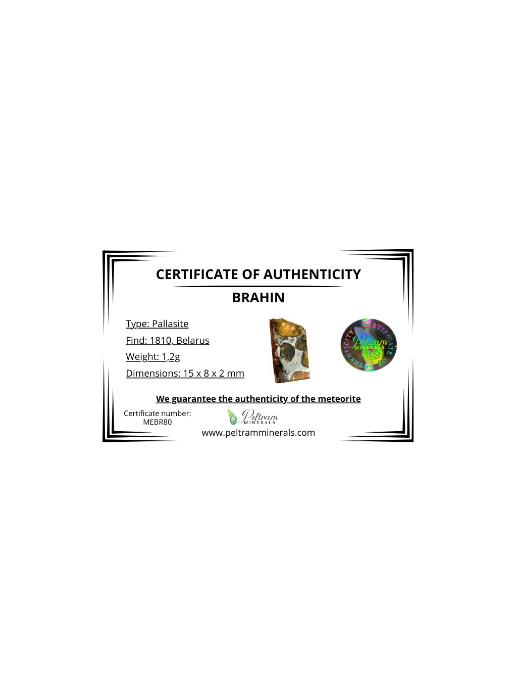 Meteorit Pallasit Brahin 1,2g – Extra kvalita – Bělorusko