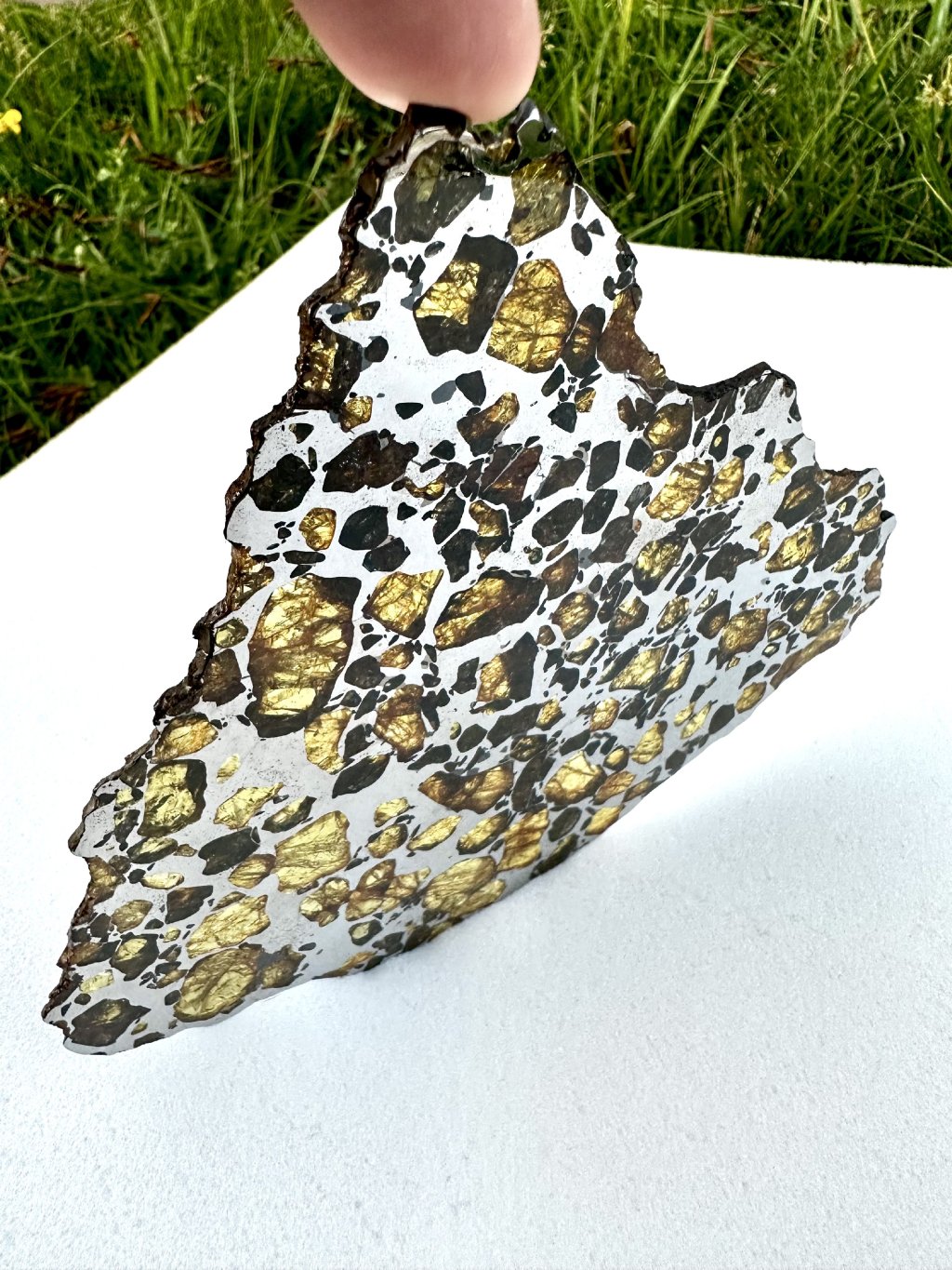 Tento kus patří k jedním z největších nalezených kusů Imilacu s takovouto kvalitou a velikostí olivínů. Největší olivín má více jak 2 cm!