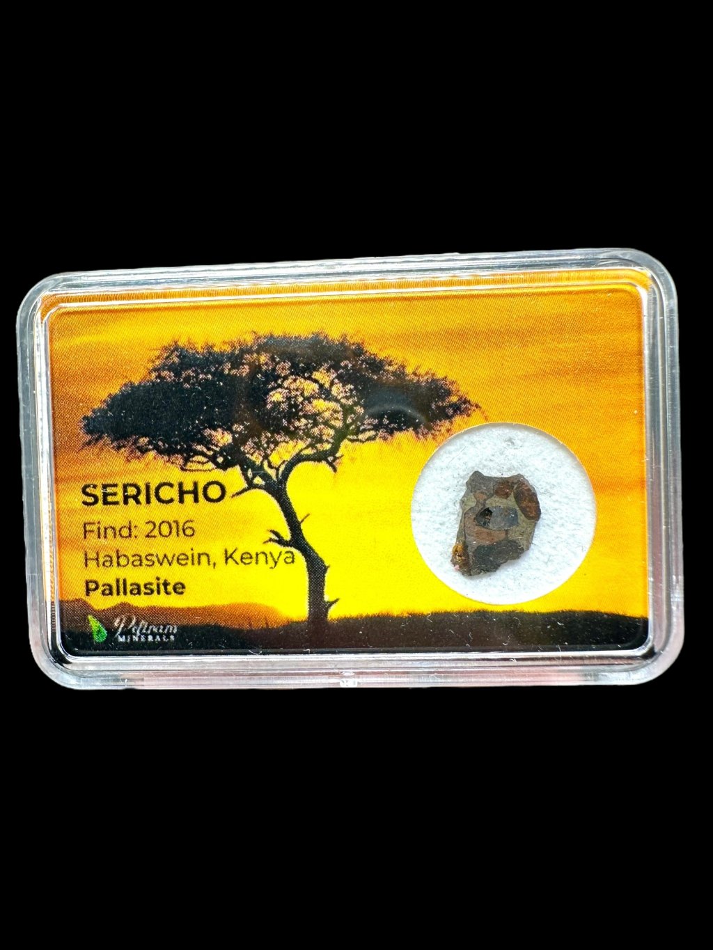 rozmístění: Olivínové krystaly jsou zapuštěny v kovové části a jsou rovnoměrně rozptýleny po celém meteoritu. Tato kombinace kovu a olivínu dodává Sericho meteoritu jeho charakteristický vzhled.