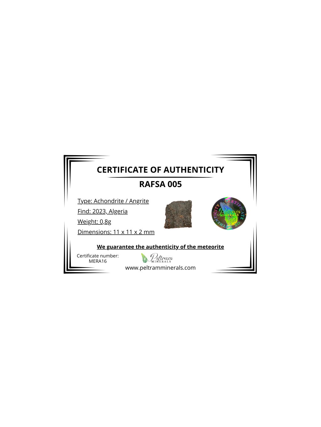 Rafsa 005 je vzácný meteorit typu angrit, který byl nalezen v roce 2023 v oblasti Tindouf v Alžírsku. Celková hmotnost nalezeného materiálu činila 2,027 kilogramu, přičemž fragmenty byly nalezeny rozptýlené po pouštní oblasti.