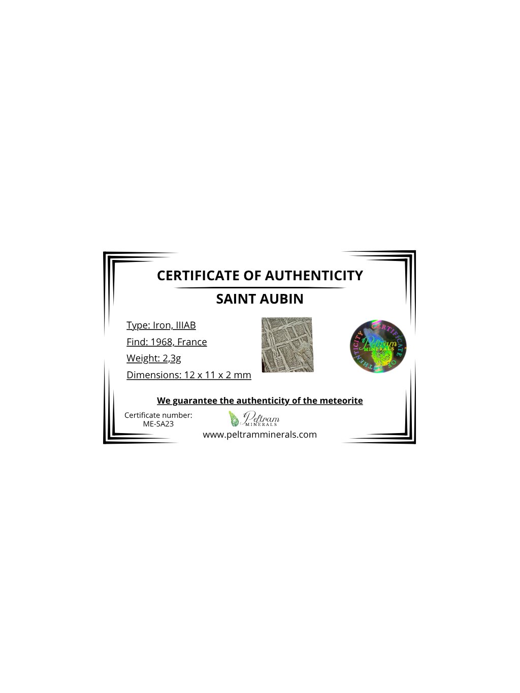 Meteorit Saint-Aubin je velký železný meteorit, objevený v oblasti Saint-Aubin ve Francii. Patří do skupiny železných meteoritů třídy IIIAB, což jej řadí mezi meteority s vysokým obsahem železa a niklu. Odhaduje se, že dopadl na Zemi před přibližně 55 000 lety.