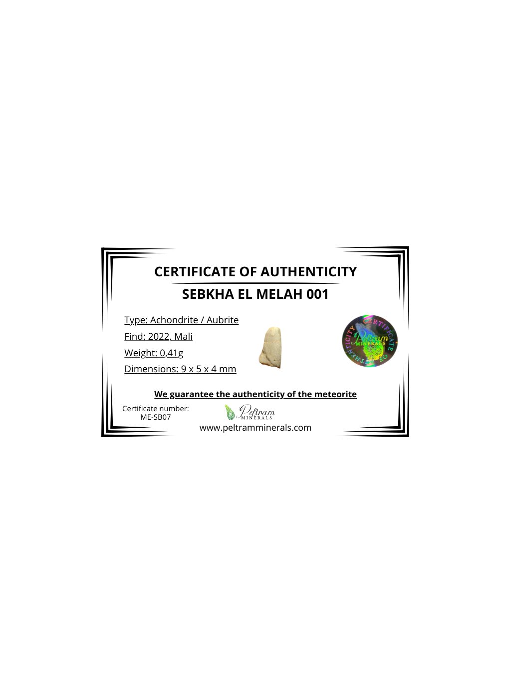 Meteorit Sebkha el Melah 001 – 0,41g – Mali